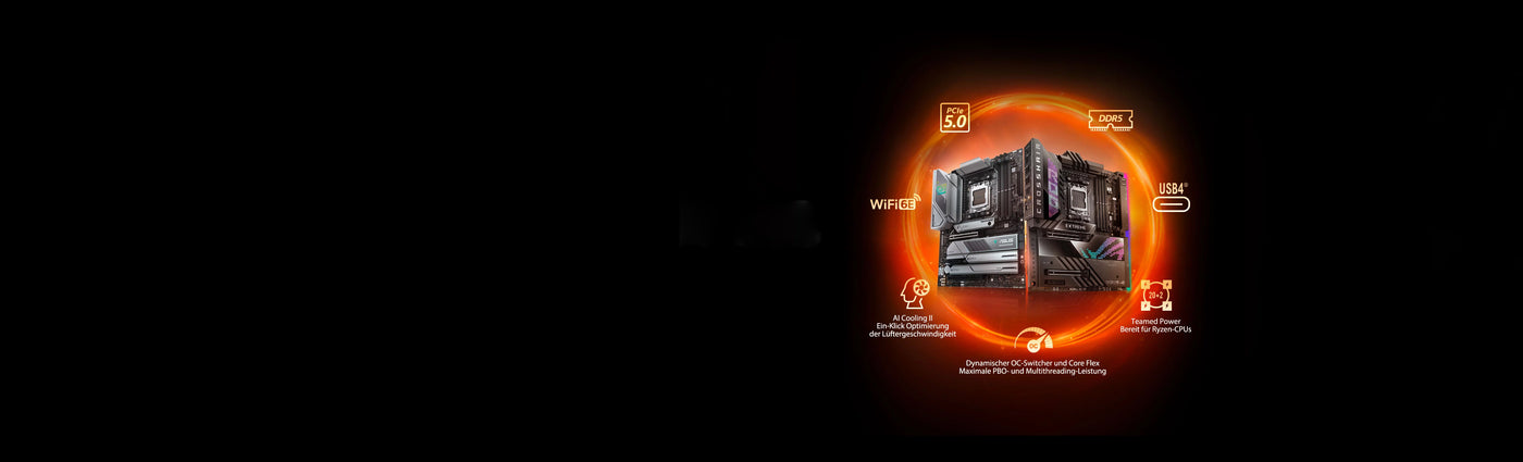 Erleben Sie ultimative Konnektivität, Kühlung und Leistung mit der einzigartigen ASUS-Technologie, die Ryzen bei jeder Aufgabe verstärkt – für ein perfektes Gaming-Erlebnis.