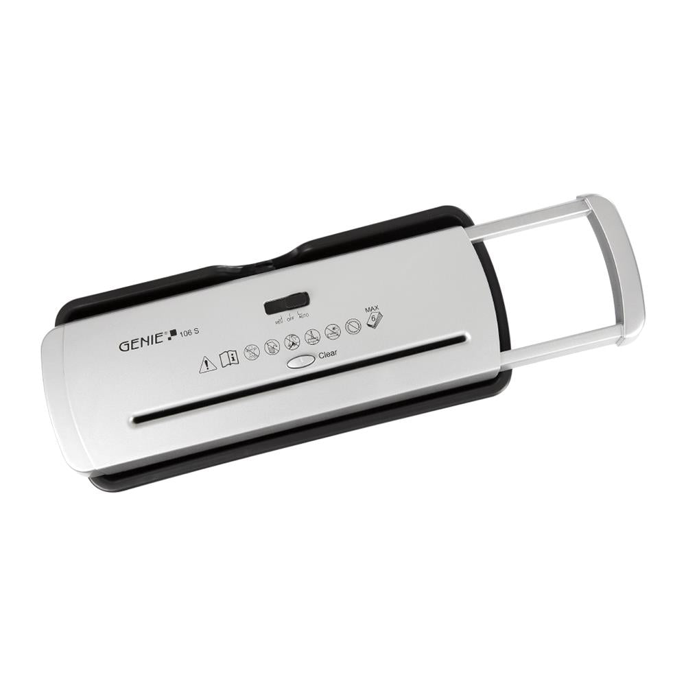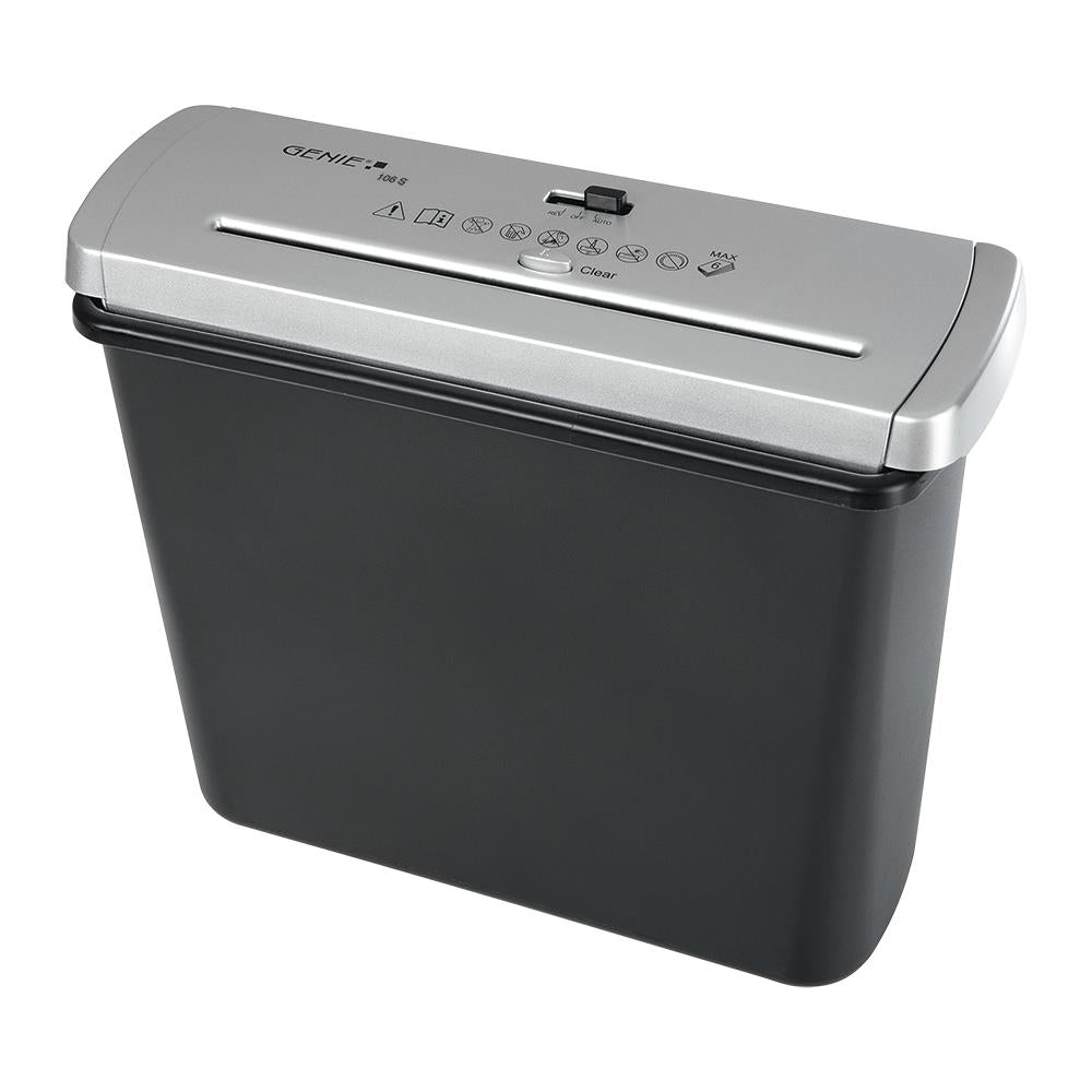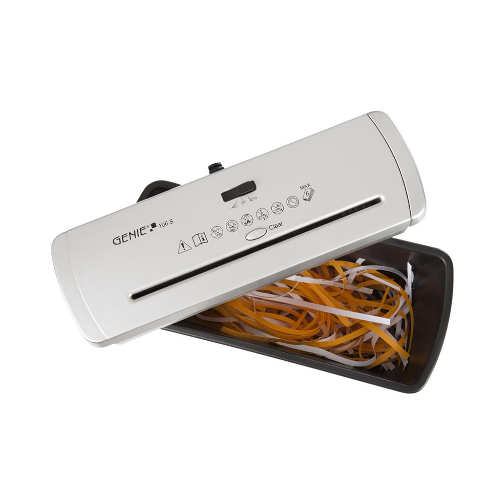 - GENIE A4 Aktenvernichter 106 S 6 Blatt Streifenschnitt 7l Papierkorb Papier Shredder silber schwarz