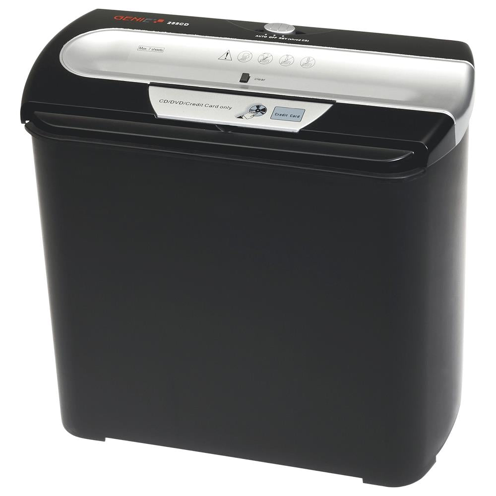 GENIE A4 Aktenvernichter 255 CD 7 Blatt Streifenschnitt CD Vernichtung Shredder silber schwarz