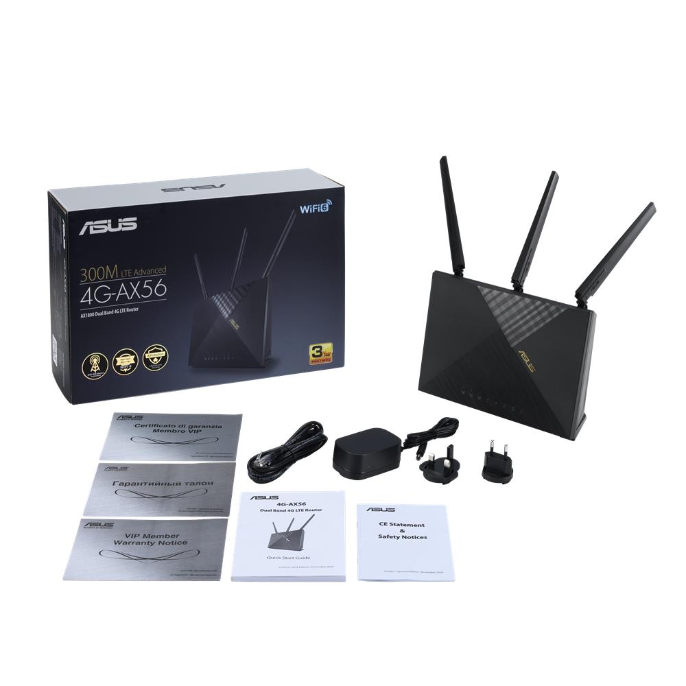 ASUS 4G-AX56 AX1800 LTE WLAN-Router WiFi-6 AX1800 SIM Slot LTE Cat. 6 bis zu 300 Mbits Gigabit LAN