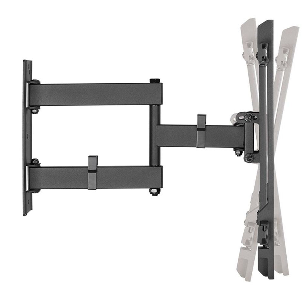 Die TV-Wandhalterung bietet höchste Flexibilität für 32-70" Monitore und eine Tragkraft bis 50 kg. Mit einer Neigung von -15°/+3° und einer Schwenkung von -90°/+90° lässt sich der Monitor optimal ausrichten. Die Frontplatte ist um -3°/+3° drehbar und passt zu VESA-Mustern von 200x100 bis 400x400. Der Wandabstand ist flexibel einstellbar zwischen 78 und 442 mm. Das integrierte Kabelmanagement sorgt für Ordnung und Eleganz. Die Halterung wird mit allen erforderlichen Befestigungsmaterialien geliefert und ist in klassischem Schwarz gehalten. Perfekt für Büro-Umgebungen, wo Anpassungsfähigkeit und Übersichtlichkeit gefragt sind.