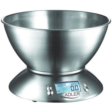 Adler AD 3166 Küchenwaage mit Schüssel Schale Edelstahl Digital Display beleuchtet