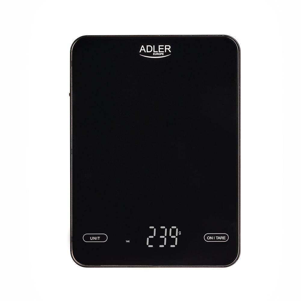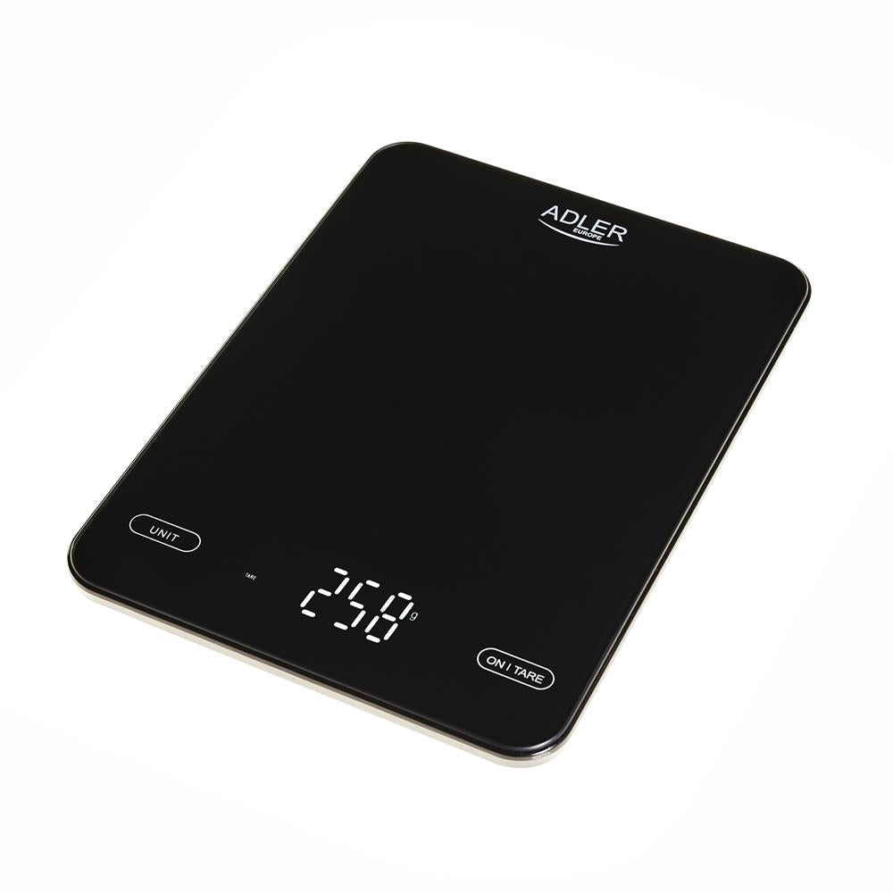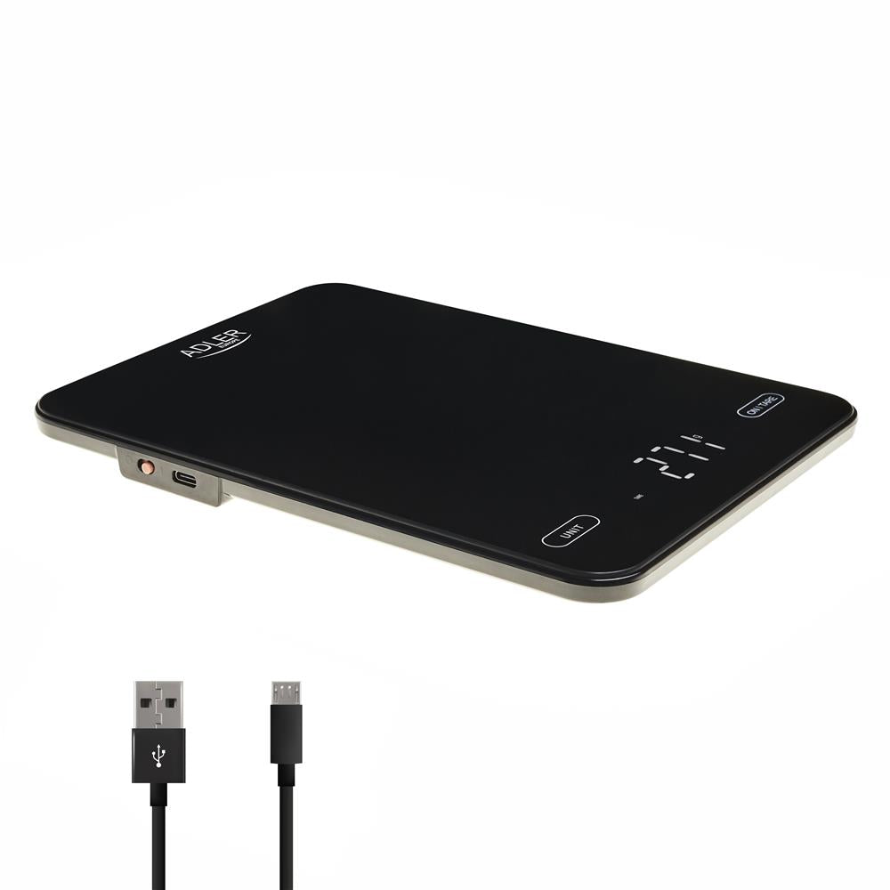 Adler AD 3177 Küchenwaage, in Schwarz, max. Tragkraft 10kg, wiederaufladbar über USB