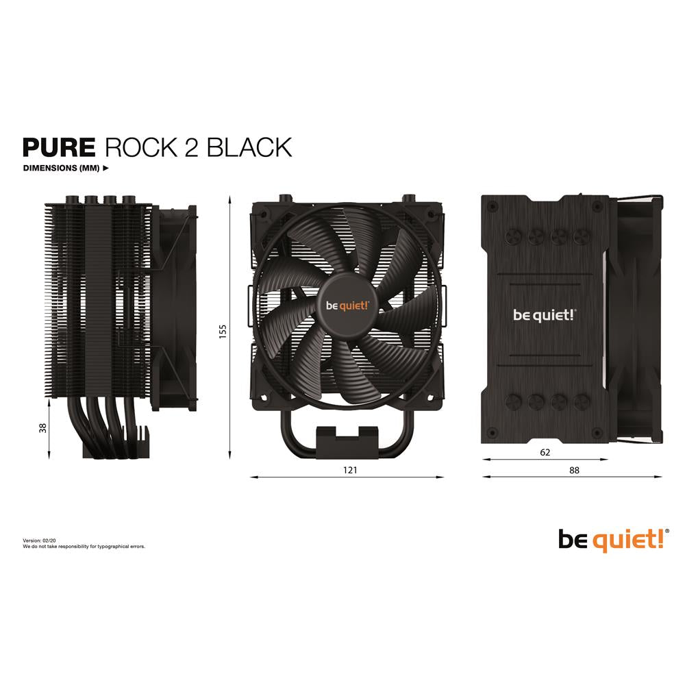 be quiet! PURE ROCK 2 BLACK Luftkühler CPU-Kühler 150W TDP Kühlleistung 6mm-Heatpipes BK007