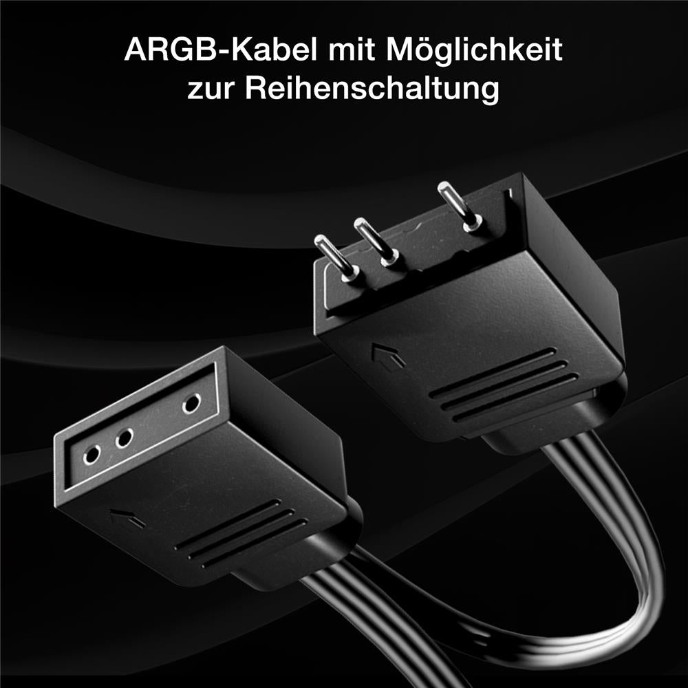 - Reihenschaltung von mehreren Lüftern dank ARGB-Kabel für einfache Erweiterung und Steuerung.