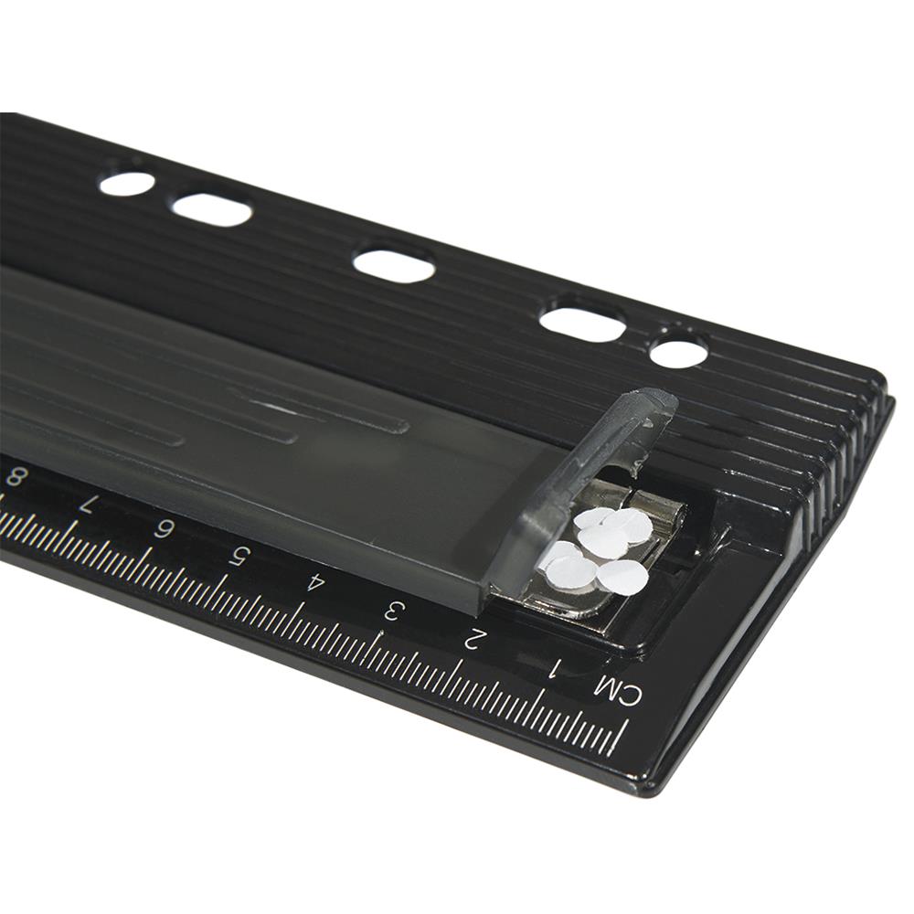 - mit Auffangbehälter für Papierschnipsel, Anschlag / Anlagepunkt und Zentimetereinteilung