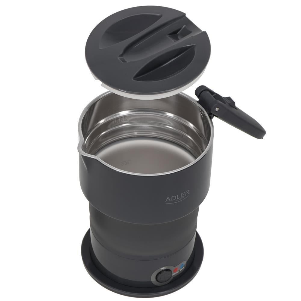 Adler AD 1377 Reise Wasserkocher 0,6 L faltbares Silikongehäuse Camping grau
