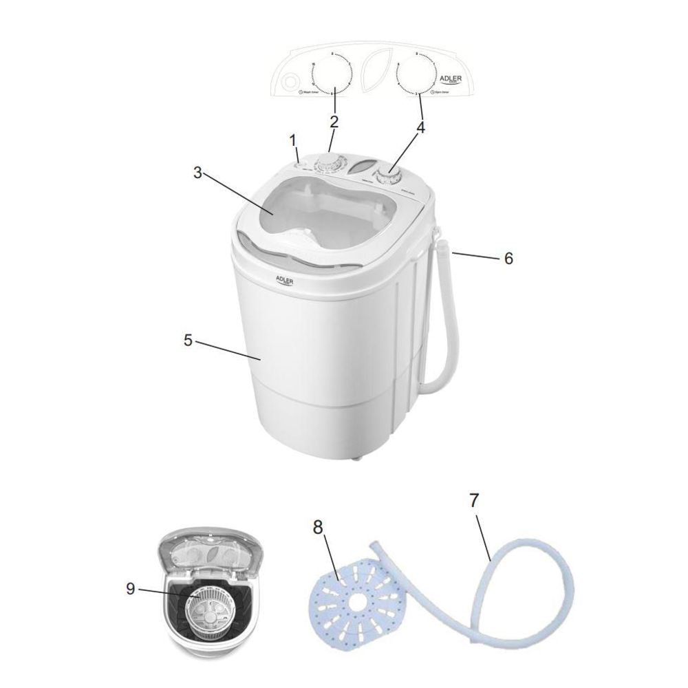 Die Waschmaschine + Schleuderkammer 2 in 1 AD 8055 ist die perfekte Lösung für Sie, wenn Sie gerne Zeit mit Ihrer Familie auf den Reisen verbringen, und wenn Sie Ihren Urlaub in einem Sommerhaus oder auf dem Campingplatz verbringen möchten. Auch während der Ferien lohnt es sich, für Ordnung und Sauberkeit um Sie herum zu sorgen. Meistens ist es die Notwendigkeit des Waschens, die uns den Schlaf raubt. Die Zeit, die für das Händewaschen der Kleidung der ganzen Familie benötigt würde, kann viel besser genutzt werden! Wenn Sie also auf der Suche nach einer modernen Lösung für das Wäschewaschen außerhalb des Hauses sind, brauchen Sie nicht weiter zu suchen! Dieses Gerät funktioniert unter allen Bedingungen!
