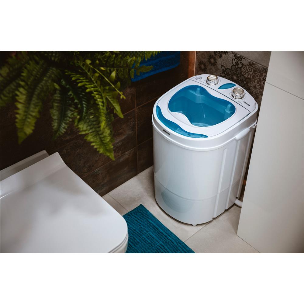 Diese leichte und kompakte Waschmaschine hat eine Kapazität von 3 kg. Sie eignet sich perfekt für das Waschen kleiner Wäschemengen - auch von empfindlichen Stoffen. Ihr Waschprogramm ist kurz, es dauert nur 15 Minuten. Das Gerät hat einen geringen Wasser- und Energieverbrauch und ist einfach zu bedienen. Es verfügt auch über ein Schleuderprogramm, das nach dem Waschen der Kleidungsstücke verwendet werden kann.