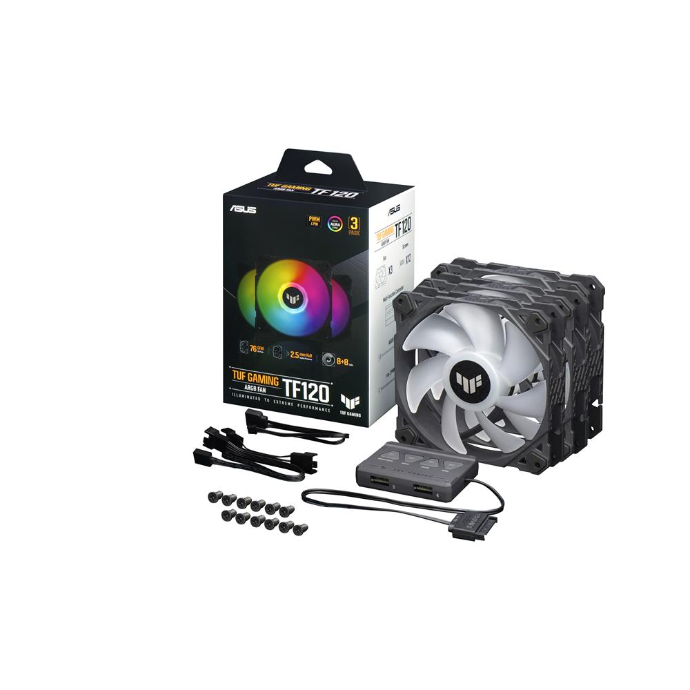 ASUS TUF Gaming TF120 ARGB-Gehäuselüfter 3er Pack mit Controller Aura Sync leiser Lüfter PWM