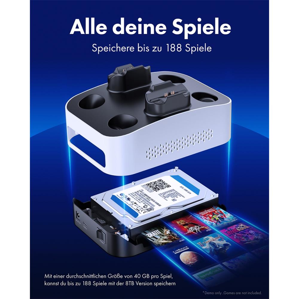 - 8TB Festplatte mit integrierter Controller-Ladestation