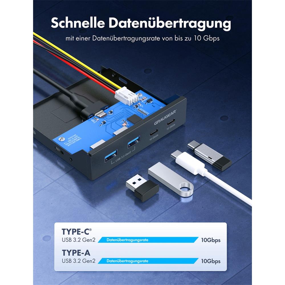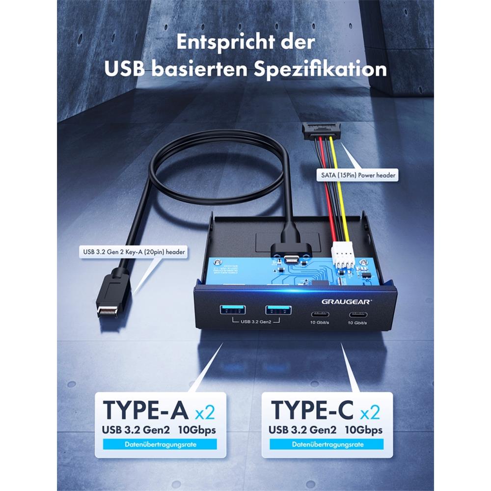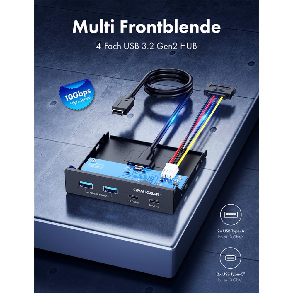 GRAUGEAR Multi Frontblende mit USB 3.2 Gen2 HUB