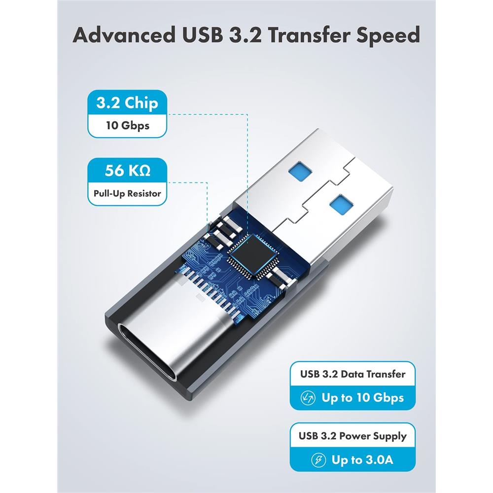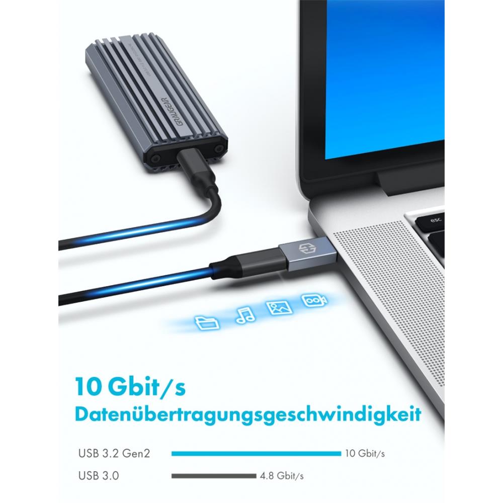 - Funktion: USB 3.2 Gen2 10 Gbit/s Type-C, Buchse zu Type-A Stecker Adapter