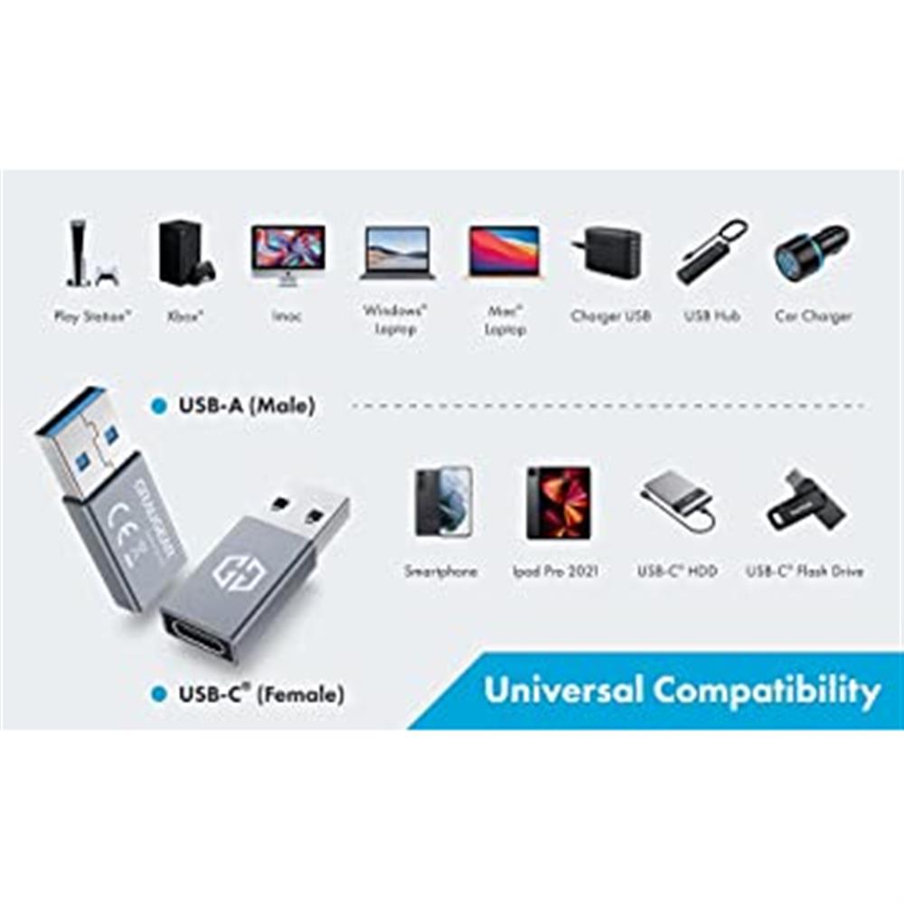 - Wandelt USB-A in USB-C für moderne Geräte.