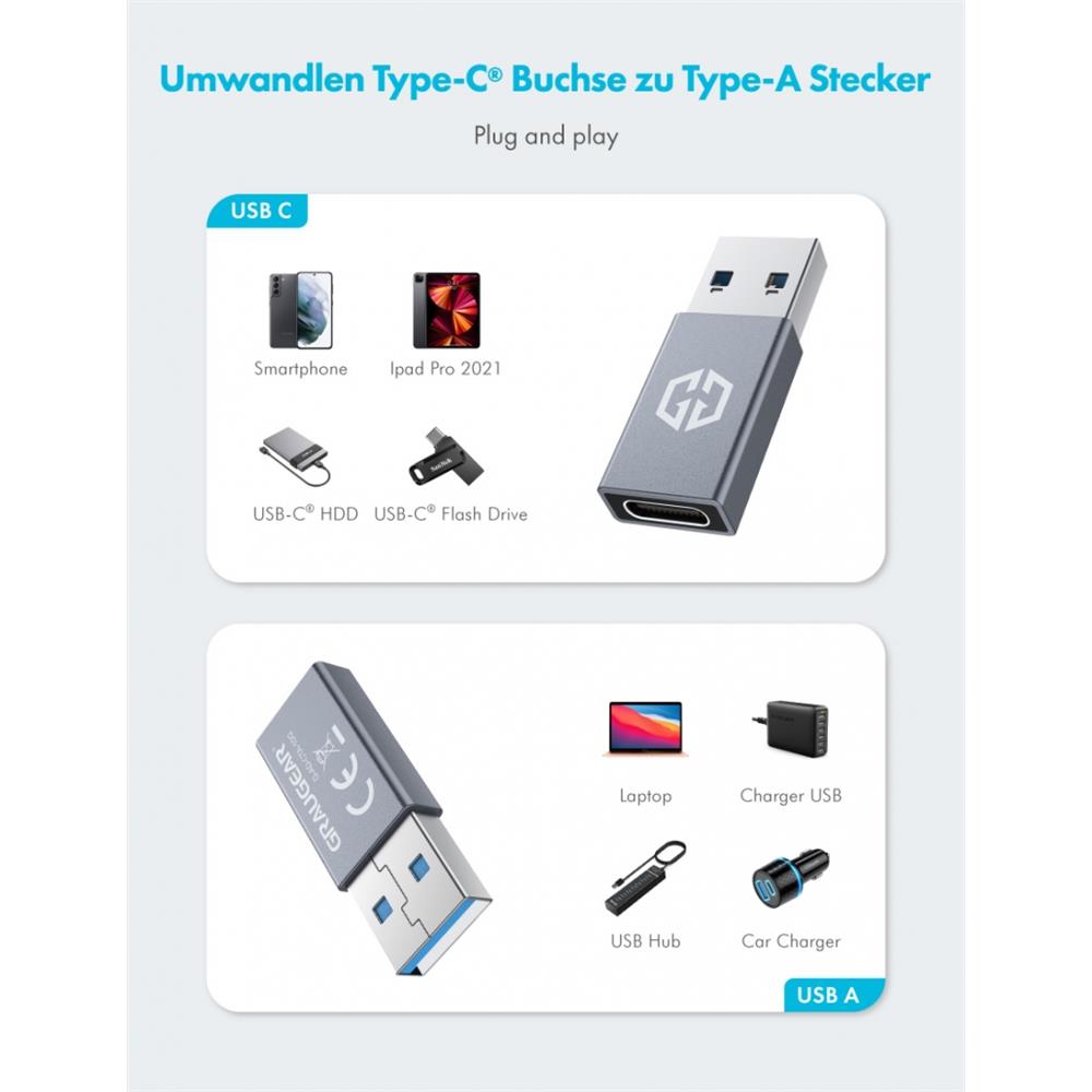 GRAUGEAR USB Type-C Adapter, Type-C Buchse auf Type-A Stecker