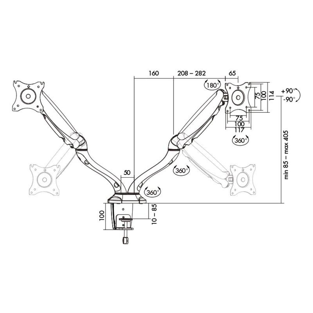 LogiLink 2-fach Monitorhalterung für 13–27" aus Stahl mit Gasdruckfeder in Schwarz VESA