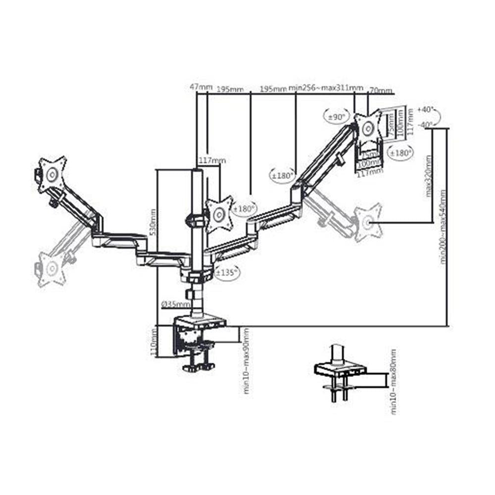 Befestigen Sie Ihre drei TV- und Computer-Monitore direkt am Schreibtisch. So können Sie auch dort Ihre Bildschirme mit voller Bewegungsfreiheit nutzen und sie nach Belieben neigen, schwenken oder drehen. Außerdem haben Sie die Möglichkeit den Arm in der Höhe zu verstellen, um Ihnen eine neue Dimension des visuellen Komforts zu ermöglichen. Die LogiLink Halterung eignet sich für drei flache als auch für curved Monitore.