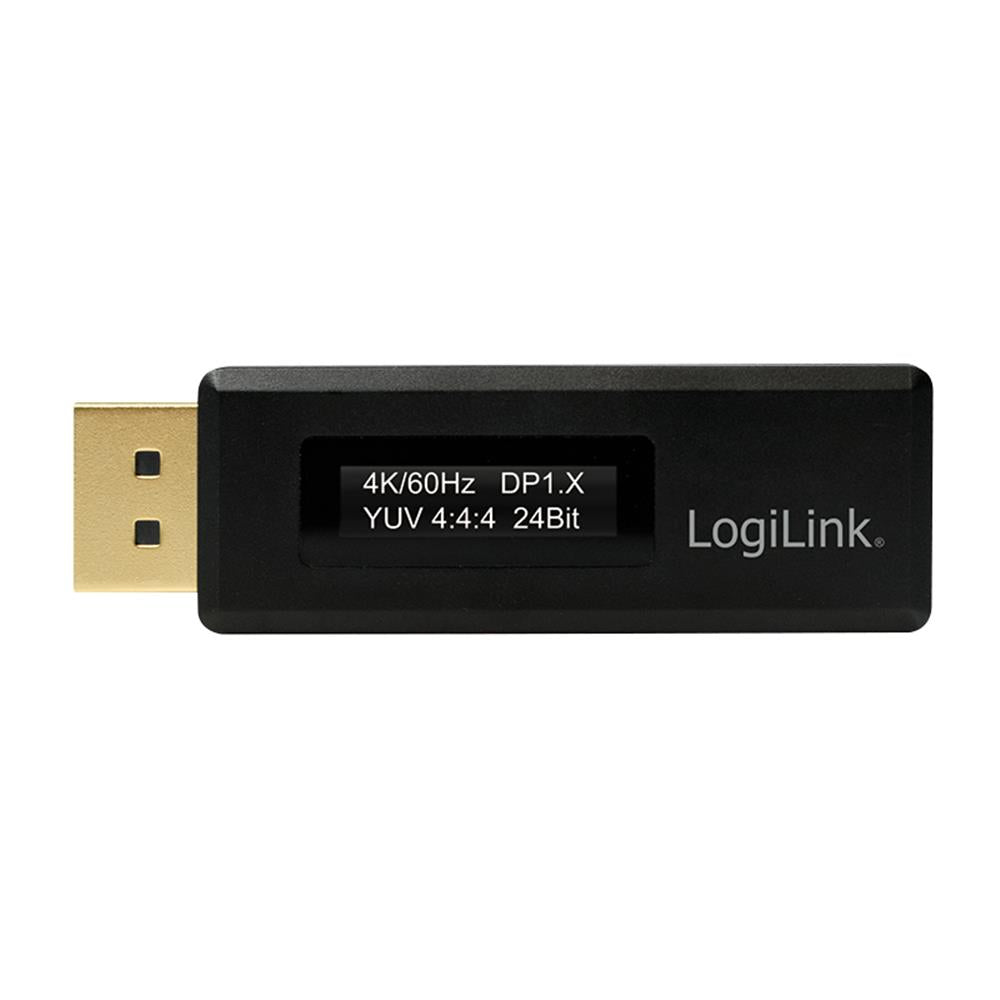 Der DisplayPort Tester von LogiLink ermöglicht ein schnelles und einfach Auslesen der im Monitor gespeicherten EDID Daten. Angezeigt werden Auflösung, HDCP Version, Farbraum und das Ergebnis des Link Training.