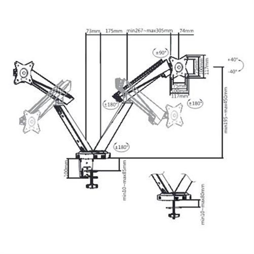 - Montageart: Tischklemm- oder Tischlochmontage; Tragkraft: Pro Arm 8 kg max.; Maximale Armlänge: jeweils 480 mm