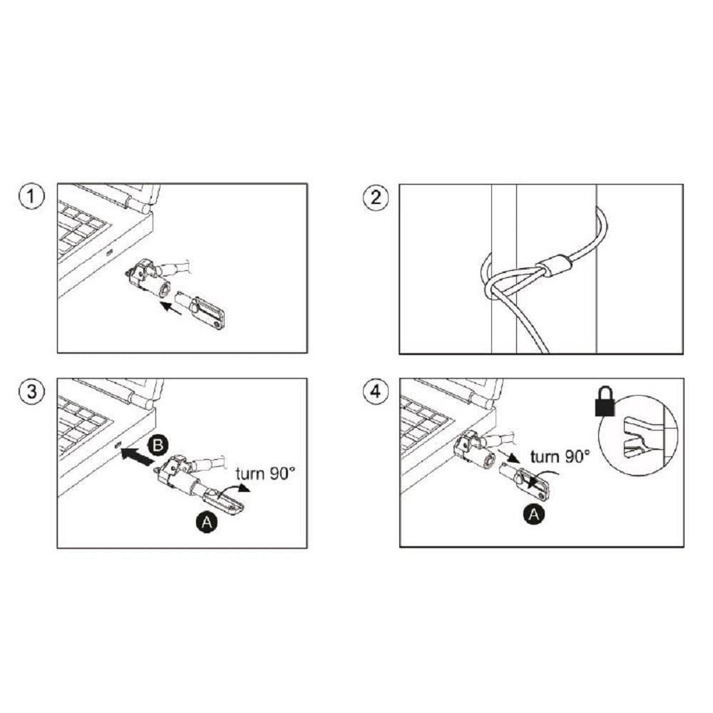 Die Noble-Lock-Schlüsselverriegelung bietet einen optimalen Schutz für Ihren Laptop. Dank dem extra robusten Kabel ist Ihr Notebook vor Diebstählen gesichert. Und so einfach funktioniert es: Wickeln Sie das Kabel um einen festen Gegenstand z. B. ein Tischbein und führen Sie das Schloss durch die Schlaufe. Drehen Sie nun den Schlüssel um 90° und setzen ihn in den Noble-Wedge-Lock-Steckplatz Ihres Laptops ein. Drehen Sie den Schlüssel jetzt gegen den Uhrzeigersinn um den Laptop zu sichern.