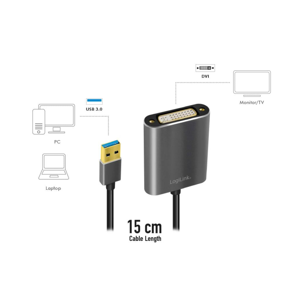 LogiLink USB 3.0-Adapter USB-A/M zu DVI/F 1080p schwarz 0,1 m