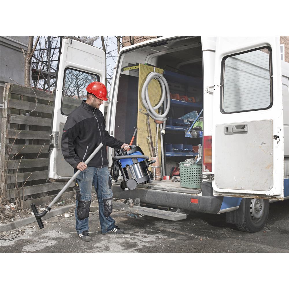 Die 20 Liter Maschinen überzeugen durch eine hohe Saugleistung und sind optional mit einem Edelstahl-Behälter erhältlich. Der Sauger ist zudem mit einem robusten Fahrgestell und einem ergonomisch angebrachten Transporthandgriff ausgestattet.
