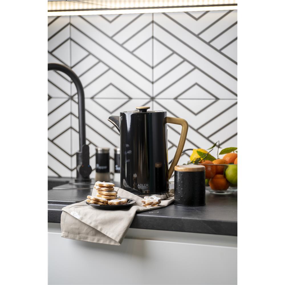 Ein moderner 1,7-Liter-Wasserkocher, der in jeder Küche nützlich ist. Seine Sicherheit wird durch eine Verriegelung gewährleistet, die das Einschalten eines leeren Wasserkochers verhindert, sowie durch die automatische Abschaltung nach dem Aufkochen des Wassers und das STRIX-Sicherheitskontrollsystem. Die Funktionalität wird durch einen stabilen Sockel und eine klare Wasserstandsanzeige erhöht. Der Wasserkocher hat eine maximale Leistung von 2200 W und ist aus rostfreiem Stahl gefertigt, was ihn zu einer meisterhaften Lösung macht, wenn es darum geht, Wasser schnell zum Kochen zu bringen. Das Gerät ist mit einem Schutz gegen Kochen ohne Wasser ausgestattet.