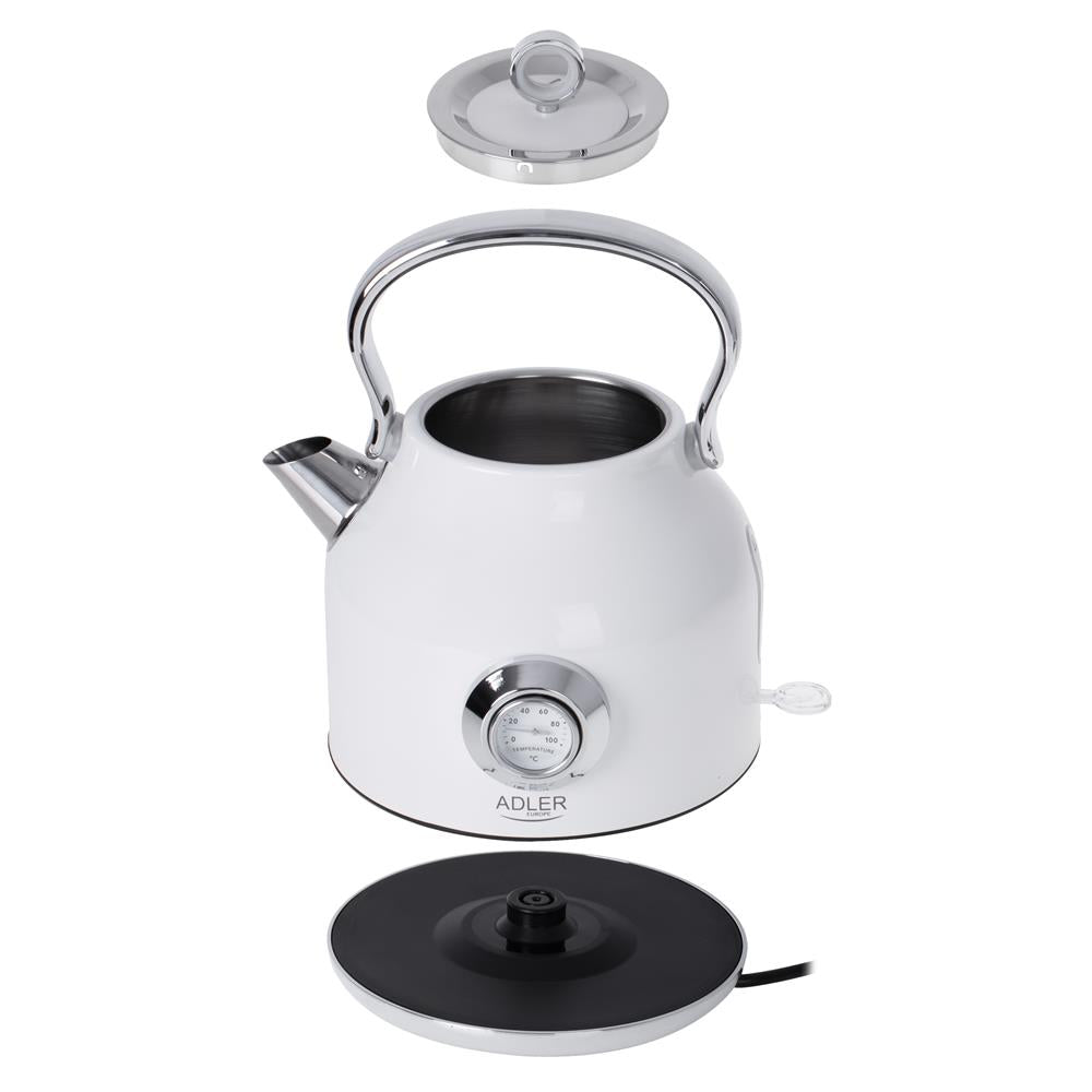 Adler AD 1346 Wasserkocher in Weiß, 1,7 Liter, 2200 Watt, aus Edelstahl mit analoge Anzeige