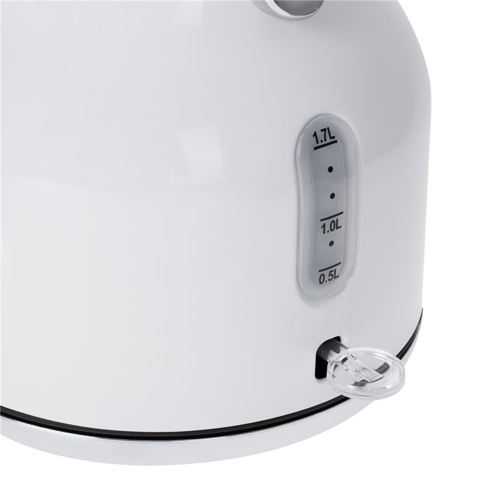 Klassischer 1,7-Liter-Wasserkocher mit Thermometer und STRIX-Sicherheitskontrollsystem, nützlich in jeder Küche. Seine Sicherheit wird durch eine Verriegelung gewährleistet, die verhindert, dass der Wasserkocher eingeschaltet wird, wenn er leer ist, und durch eine automatische Abschaltung, wenn das Wasser kocht. Die Funktionalität wird durch einen stabilen Sockel und eine leicht ablesbare Wasserstandsanzeige erhöht. Er hat eine maximale Leistung von 2.200 W und ist aus Edelstahl gefertigt, was ihn zu einem Meister im schnellen Aufkochen von Wasser macht. Die analoge Wassertemperaturanzeige und die schlanke Form sind Merkmale, die die Einrichtung eines Raumes in jedem Stil ergänzen werden.
