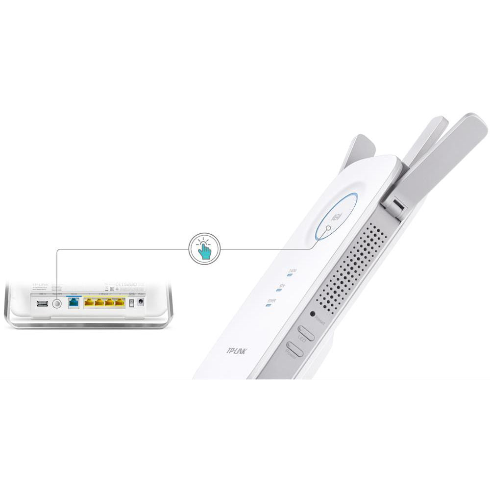 Die Inbetriebnahme das RE450 ist kinderleicht: Um den Repeater mit dem Router zu verbinden, drücken Sie zunächst die WPS-Taste am Router gefolgt von der WPS-Taste (RE) am Repeater. Das war's! Anschließend können Sie den Repeater innerhalb der WLAN-Reichweite in jede beliebige Steckdose einstecken, ohne weitere Einstellungen vornehmen zu müssen.