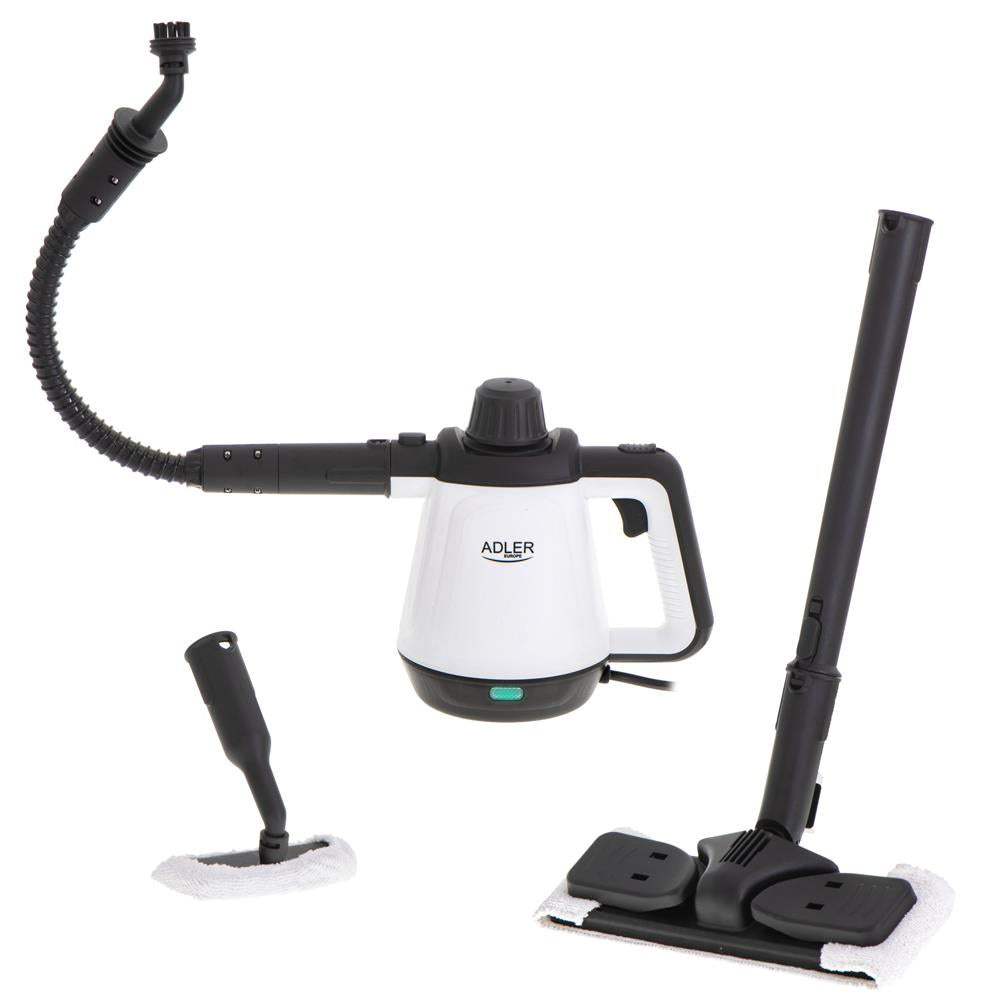 Adler AD 7038 Dampfreiniger Set 2000 Watt 450 ml Schwarz Weiß mit 13 Aufsätze Bürste Düse