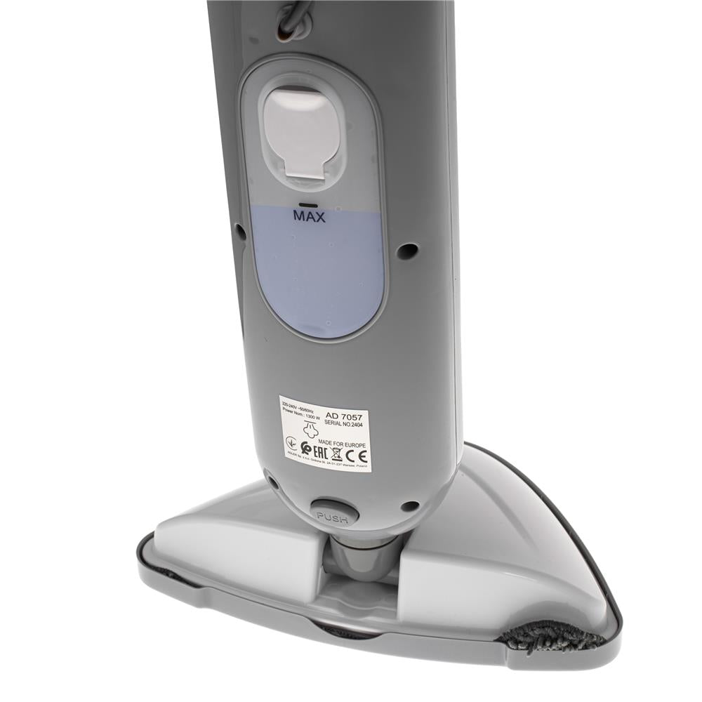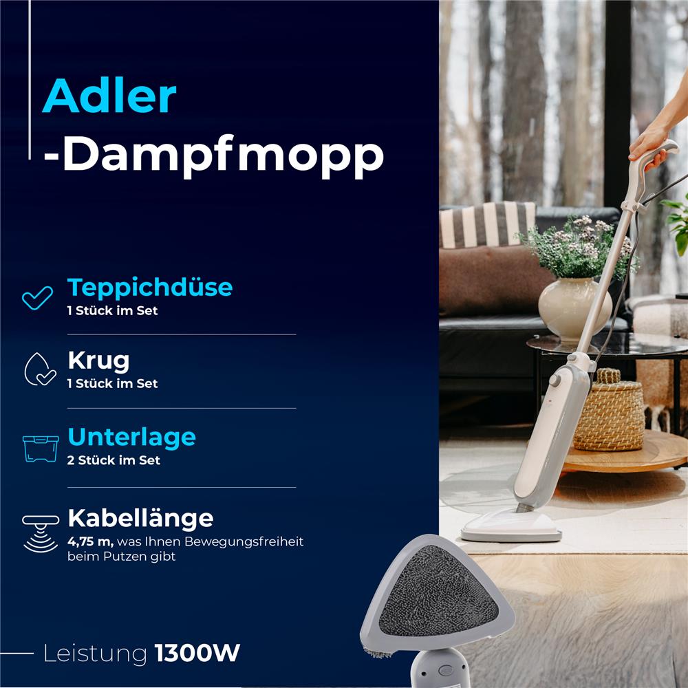 Adler AD 7057 Dampfreiniger Dampfmopp mit Reinigungspads 1300 W schnelle Aufheizzeit weiß grau
