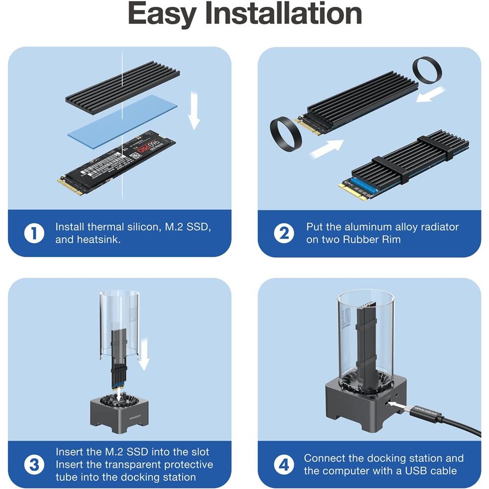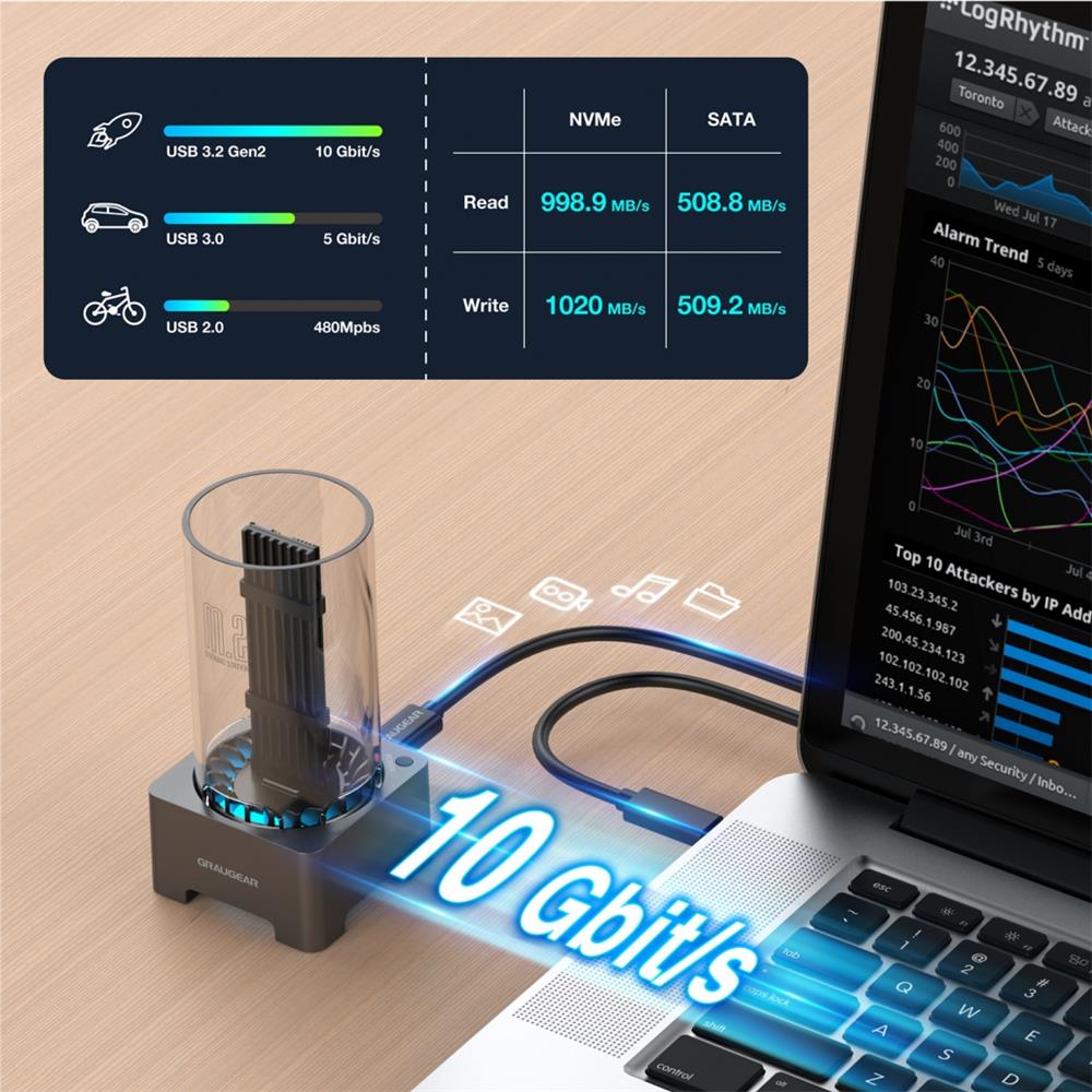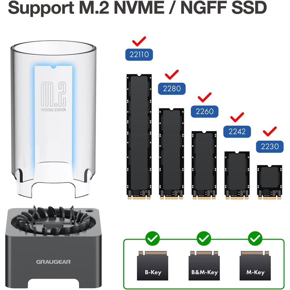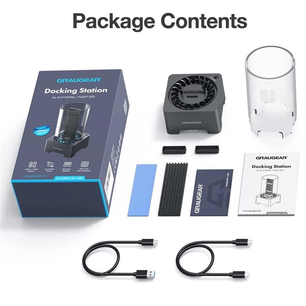 GRAUGEAR Dockingstation USB-C für M.2 NVMe NGFF SSD RTL9210B Chipsatz USB 3.2 10 Gbit/s leiser 50 mm Lüfter