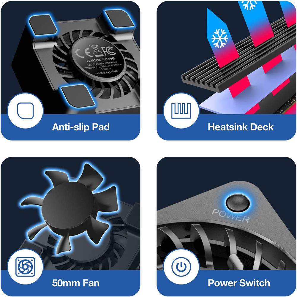 In unser M.2 NVMe/NGFF SSD Docking Station G-M2DK-AC-10G wird Deine M.2 SSD ganz ohne Werkzeug gesteckt. Zusätzlich bietet unsere Docking Station noch Kühlung durch einen 50mm aktiven Lüfter.