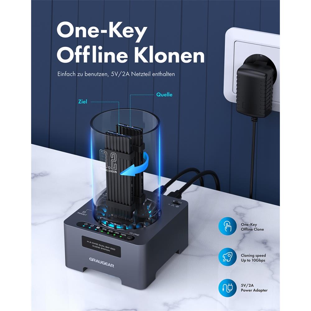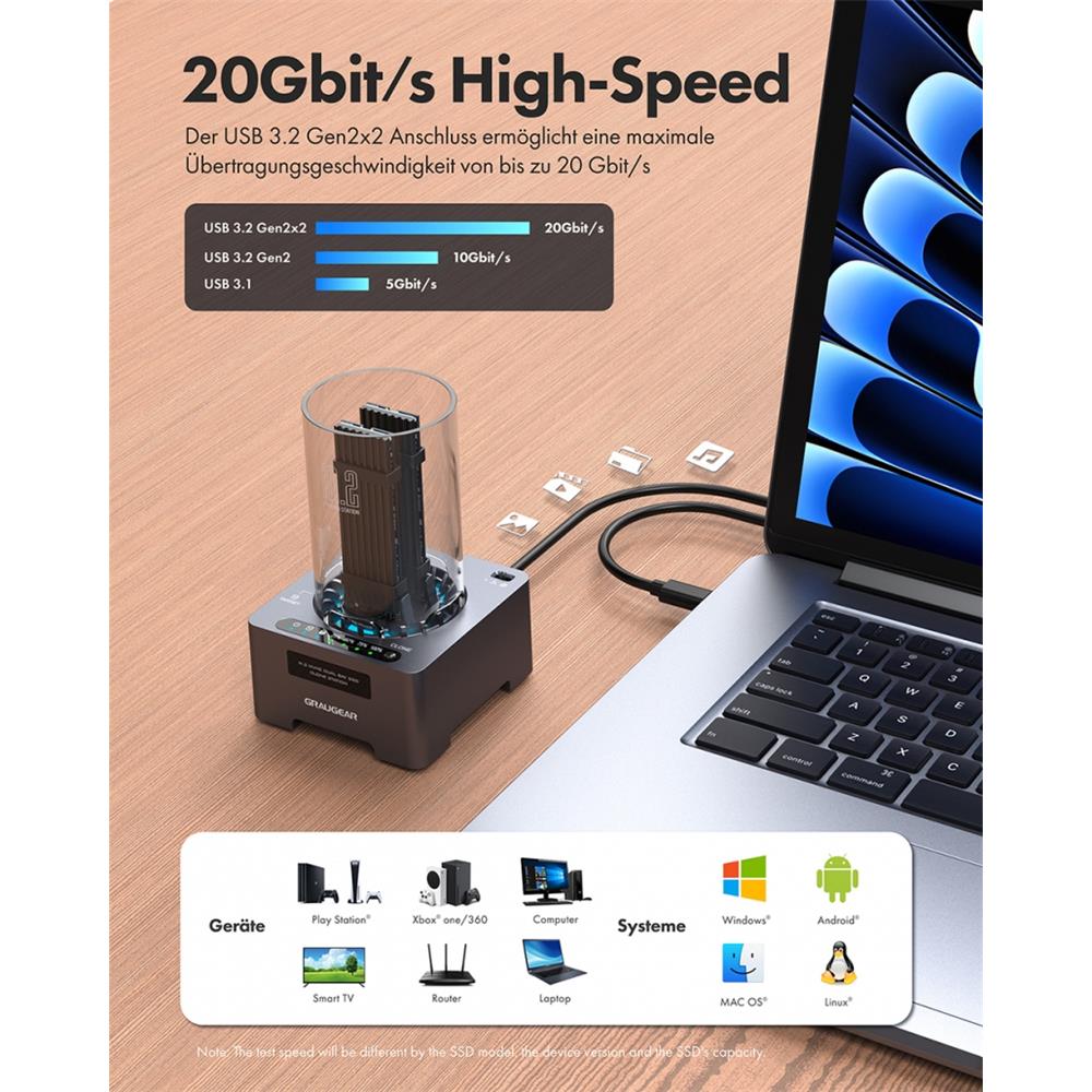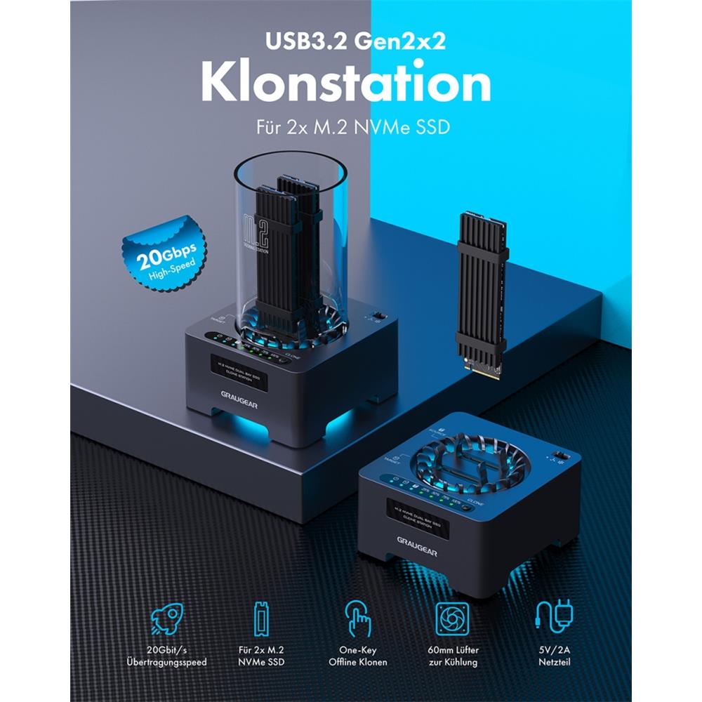 GRAUGEAR USB 3.2 Gen2x2 NVMe Klonstation für 2x M.2 NVMe SSDs