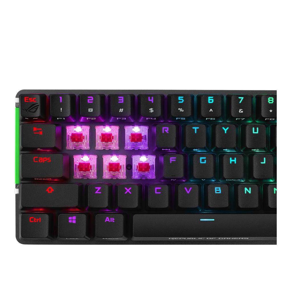 Die ROG Falchion ist mit Cherry-MX-RGB-Switches ausgestattet und liefert das präzise mechanische Tastengefühl, das von Gamern und anspruchsvollen Nutzern bevorzugt wird. Die hochwertigen, in Deutschland hergestellten Premium-Switches sind berühmt für ihren optimalen Druckpunkt und ihre schnelle Reaktionsfähigkeit bei jedem Tastendruck.