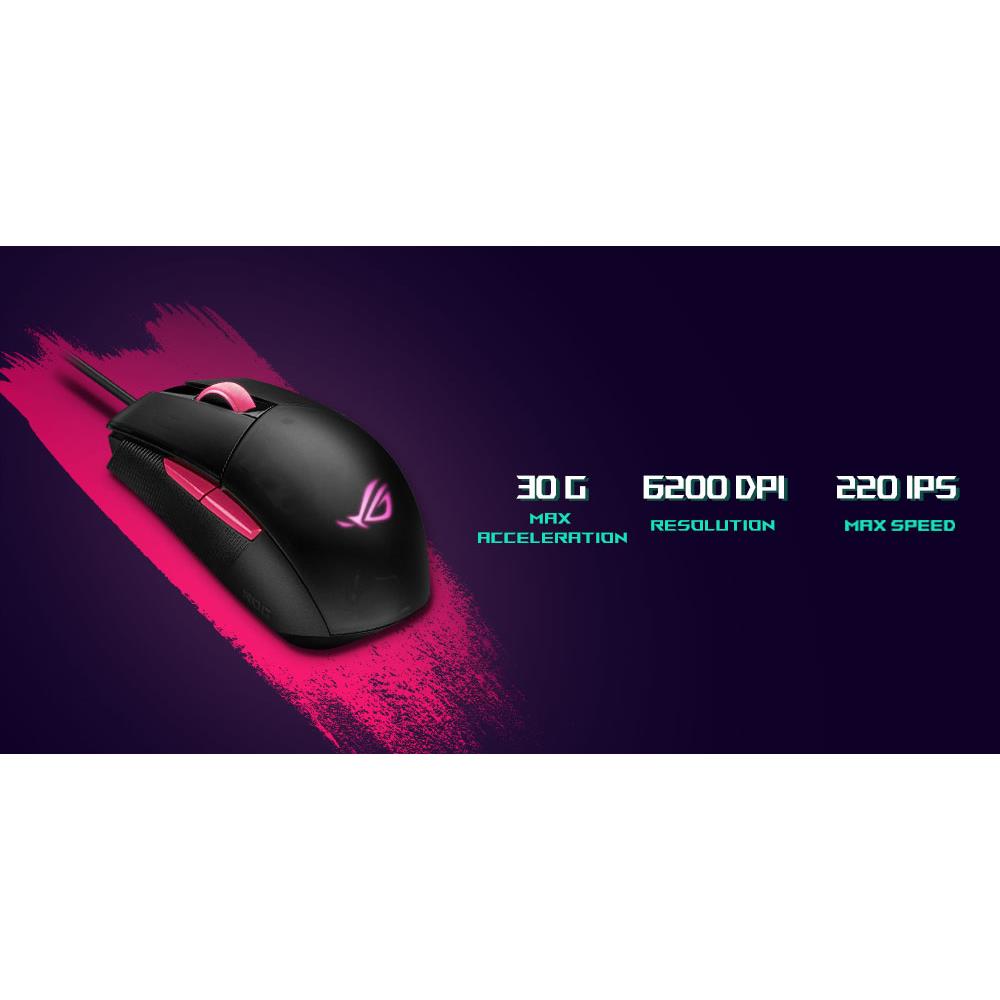 ASUS ROG Strix Impact II Electro Punk kabelgebundene Gaming Maus 6.200 DPI Aura-Sync schwarz/pink