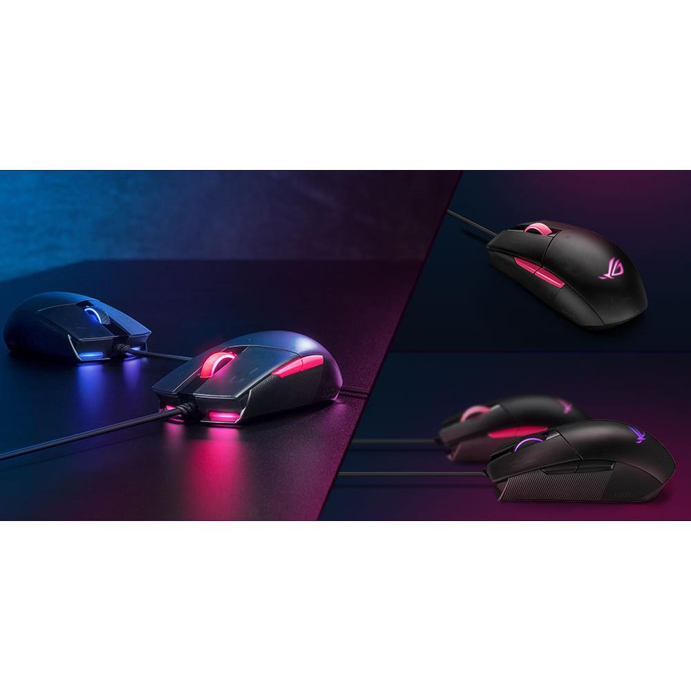 Die ROG Strix Impact II Electro Punk erstrahlt von Kopf bis Fuß, mit Aura RGB-Beleuchtung im Logo, Scrollrad und an der Vorderseite – wobei die Front-LEDs wie Scheinwerfer nach vorne zeigen, um dein Schlachtfeld zu beleuchten. Die Beleuchtung kann mit einem nahezu unbegrenzten Farbspektrum und einer Reihe dynamischer Effekte an die individuellen Vorstellungen angepasst werden. Du kannst bis zu drei Profile auf der Maus speichern, um deine Einstellungen überall hin mitzunehmen.