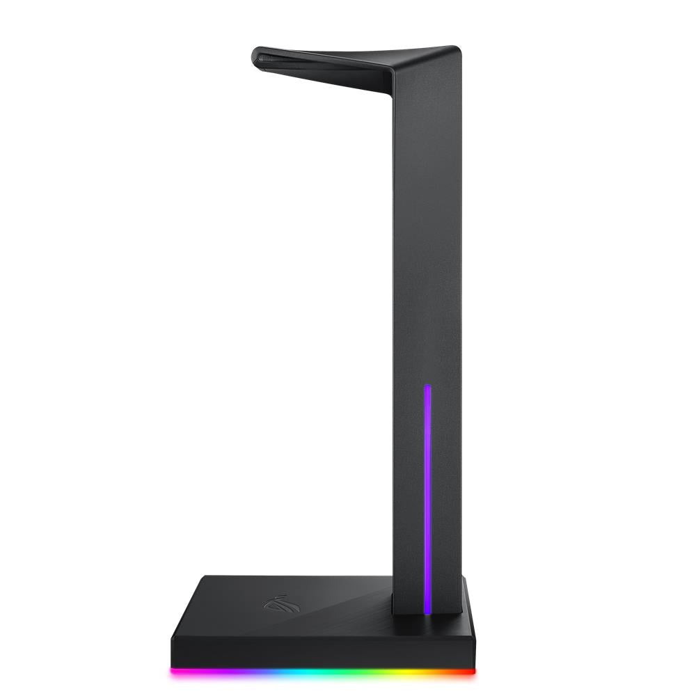 Der ROG Throne Qi ist ein Gaming-Headset-Ständer mit Wireless Charging, der entwickelt wurde, um dein Qi-fähiges Smartphone oder andere kompatible Geräte einsatzbereit zu halten und für Ordnung in deiner Gaming-Area zu sorgen. Ein integrierter ESS DAC und Verstärker verbessert das Audio-Erlebnis mit deinen Kopfhörern und liefert einen immersiven Gaming-Sound, während die anpassbaren 360-Grad-RGB-Lichteffekte, die mit anderem AURA-Sync-Zubehör synchronisiert werden können, für eine beeindruckende, perfekt abgestimmte Lichtkulisse sorgen. Das ROG Throne Qi verfügt außerdem über einen ultra-schnellen USB-3.1-Hub mit zwei Anschlüssen, der den Kopfhörerständer als Komplettlösung zum Organisieren und Aufwerten deines Gaming-Setups abrundet.