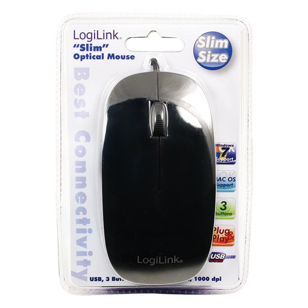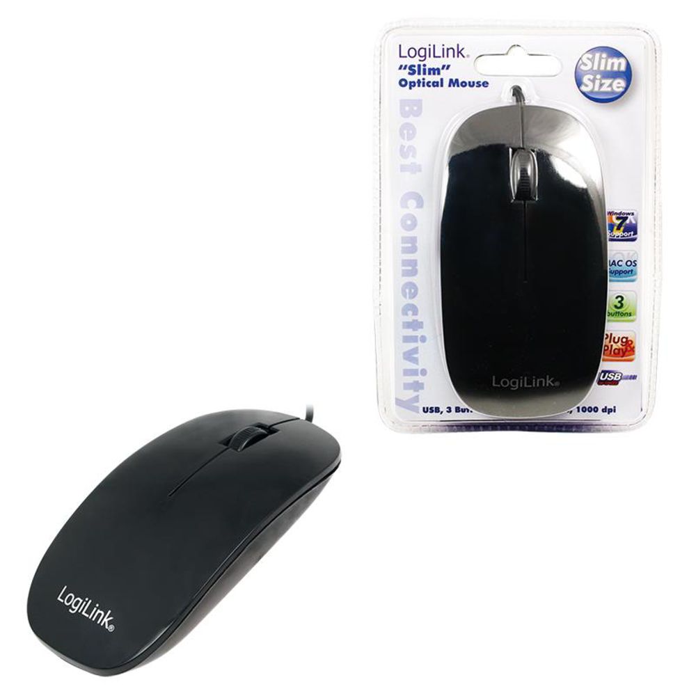 LogiLink Computermaus USB Anschluss Optisch flaches Design Slim schwarz