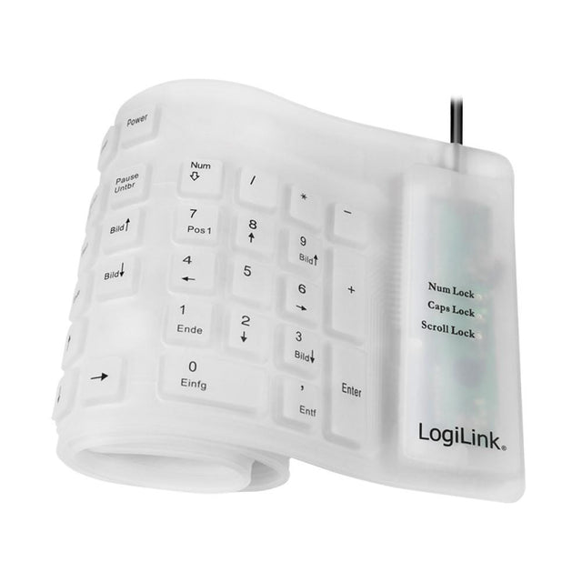 Flexible und extrem strapazierfähige Tastatur aus hochwertigem Silikonmaterial von LogiLink. Geeignet für Arbeitsplätze mit erhöhter Verschmutzungsgefahr. Einfachste Säuberung mit Schwamm und Spülwasser. Nahezu unzerstörbar und aufgerollt platzsparend verstaubar. Die Tastatur ist absolut staub-, schmutz- und wasserdicht.