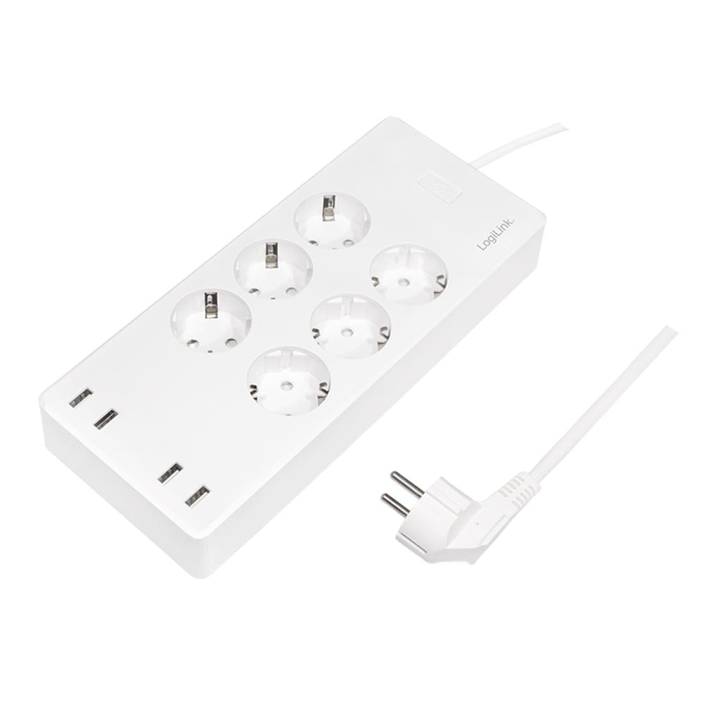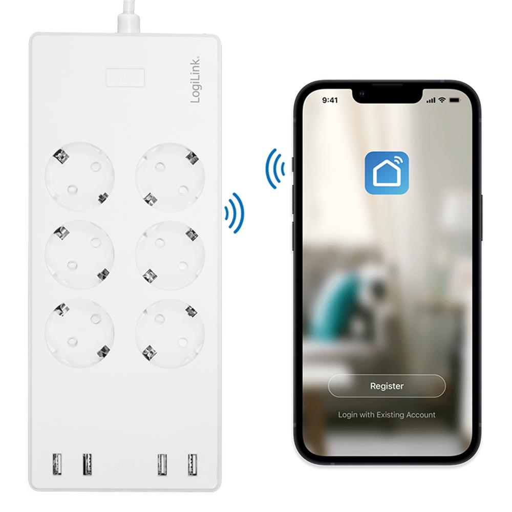 LogiLink Smart Home Wi-Fi Smart Steckdosenleiste 6-fach mit 4x USB, Tuya kompatibel