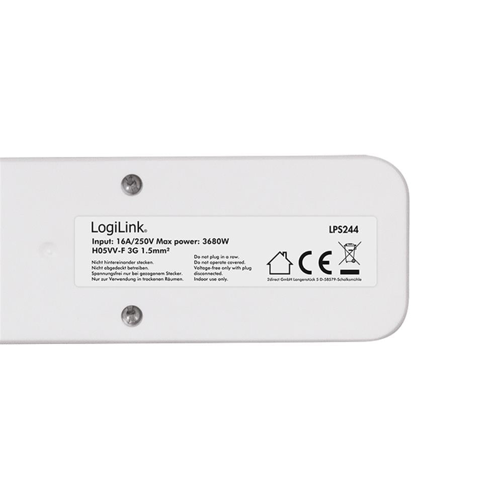 LogiLink Steckdosenleiste 3-fach mit Schalter, 3x Schutzkontaktbuchse, 1,5m, Weiß