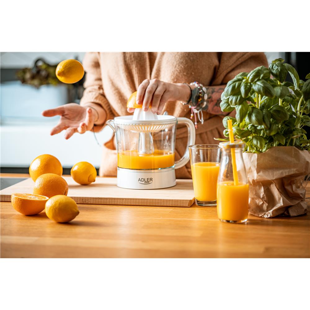 Adler AD 4009 Elektrische Zitruspresse 60W 1l weiß 2 Presskegel Saftpresse Entsafter Orangenpresse