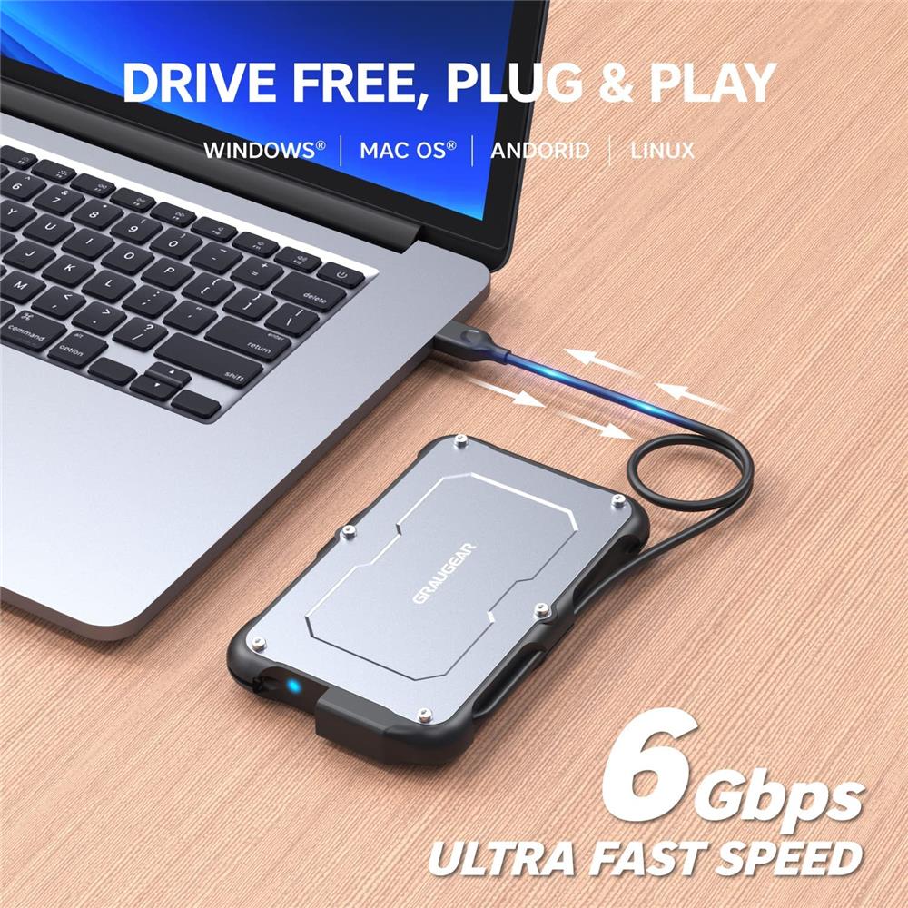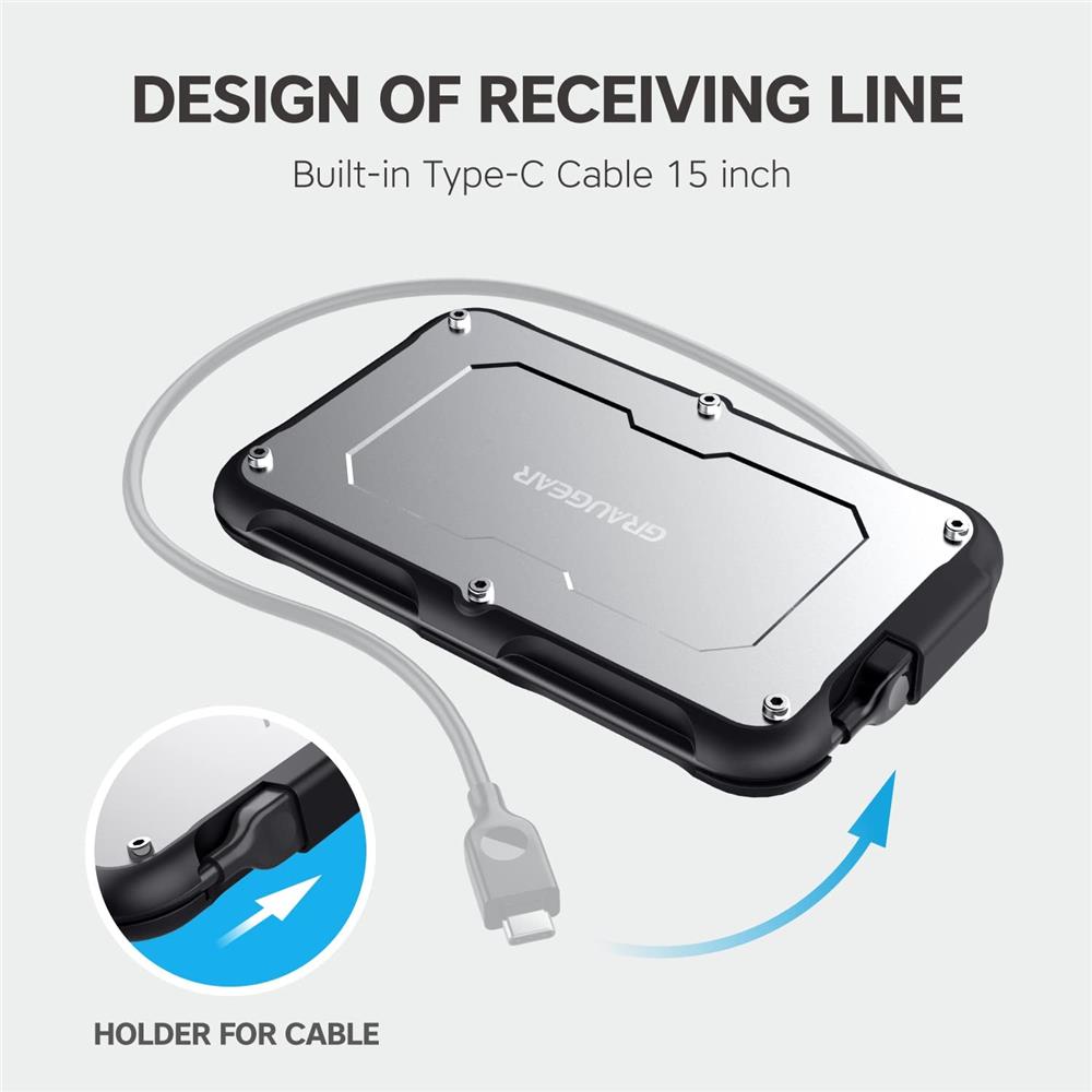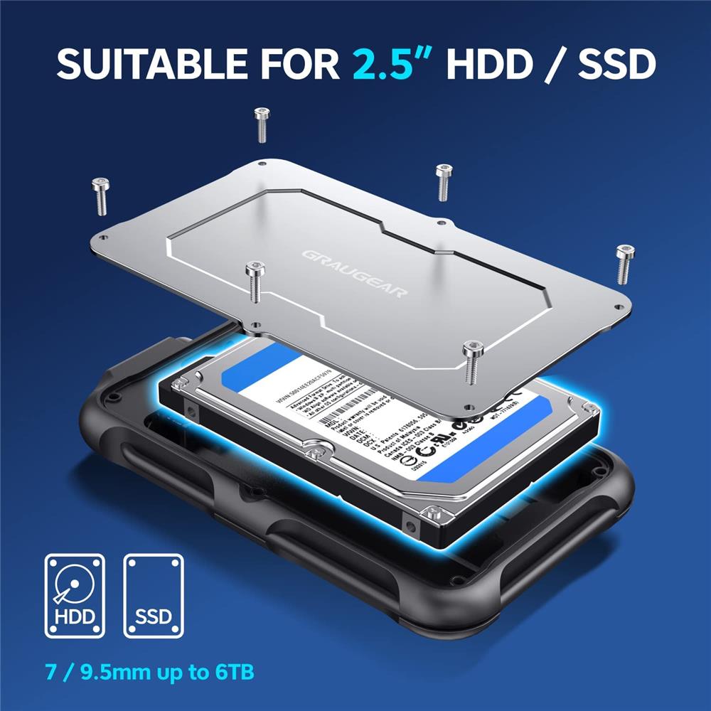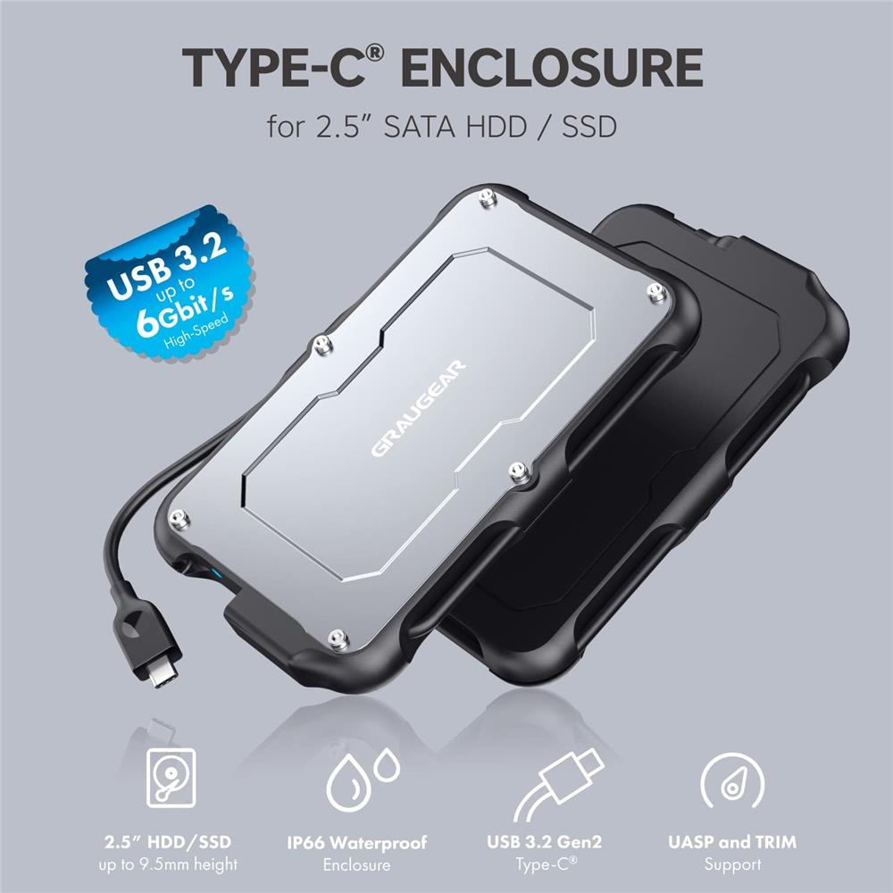 GrauGear USB Type-C externes Gehäuse für 2,5“ SATA SSD/HDD
