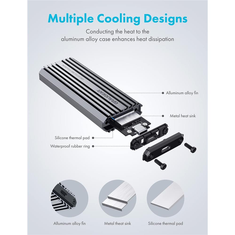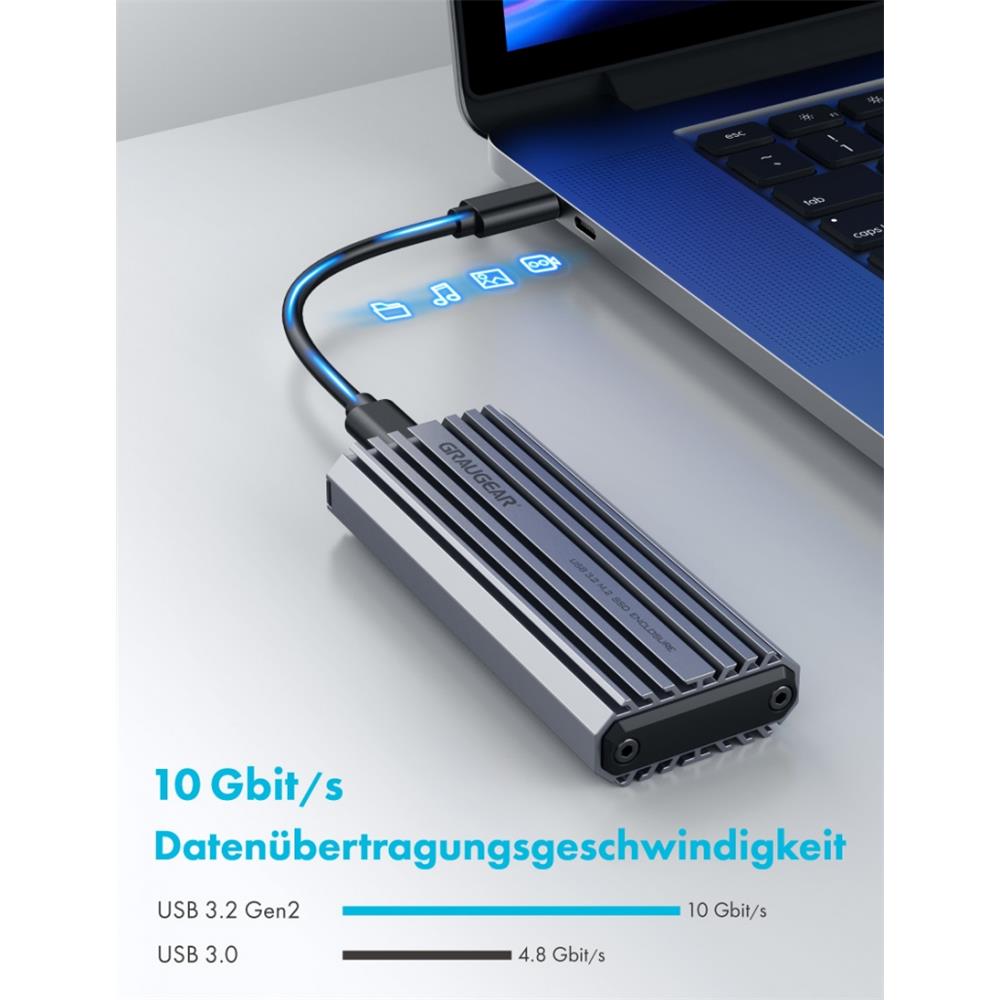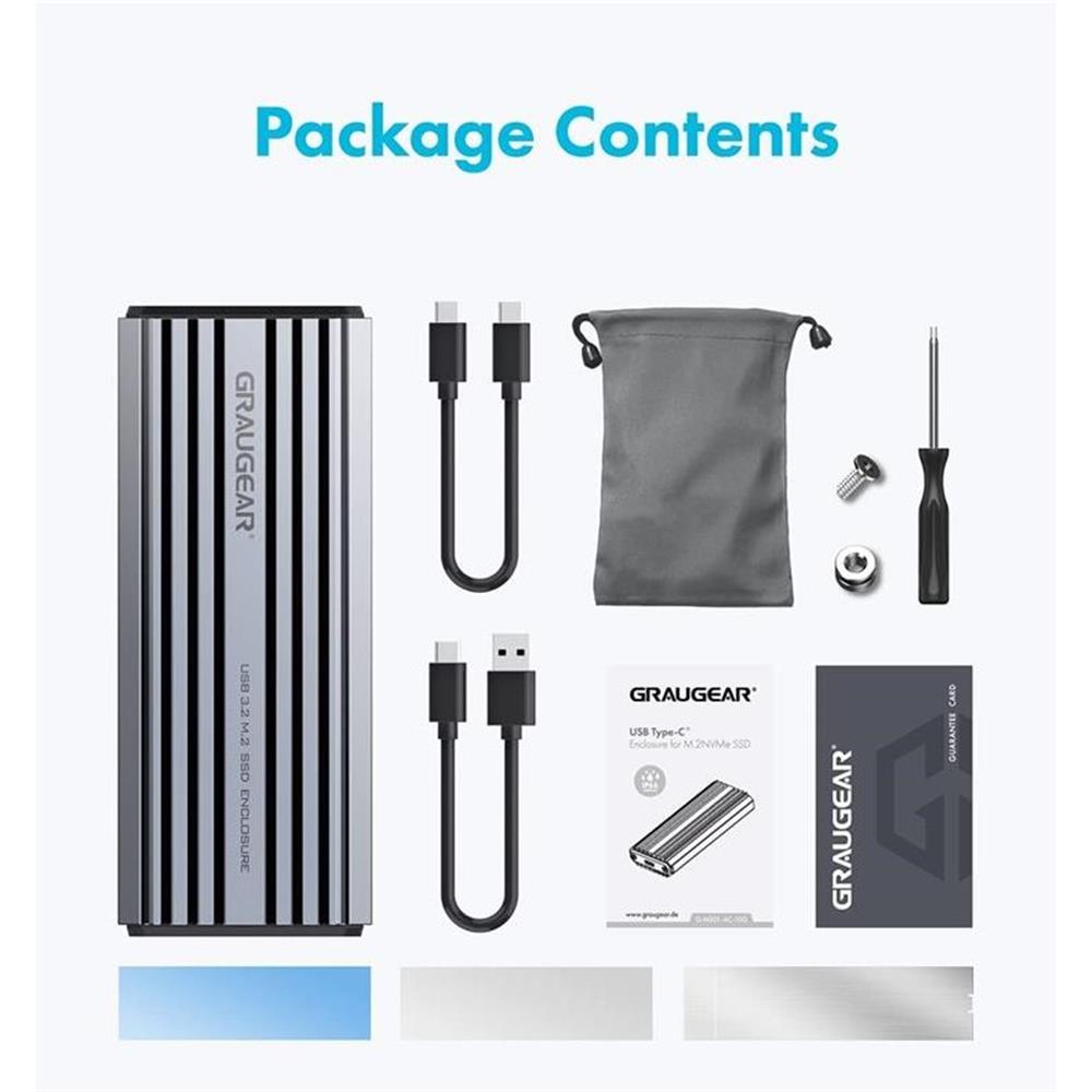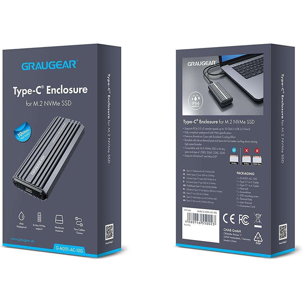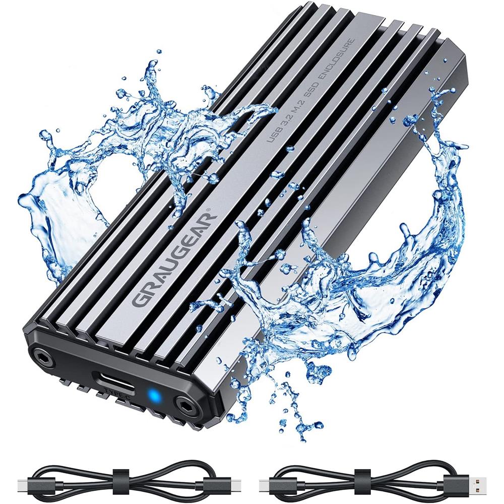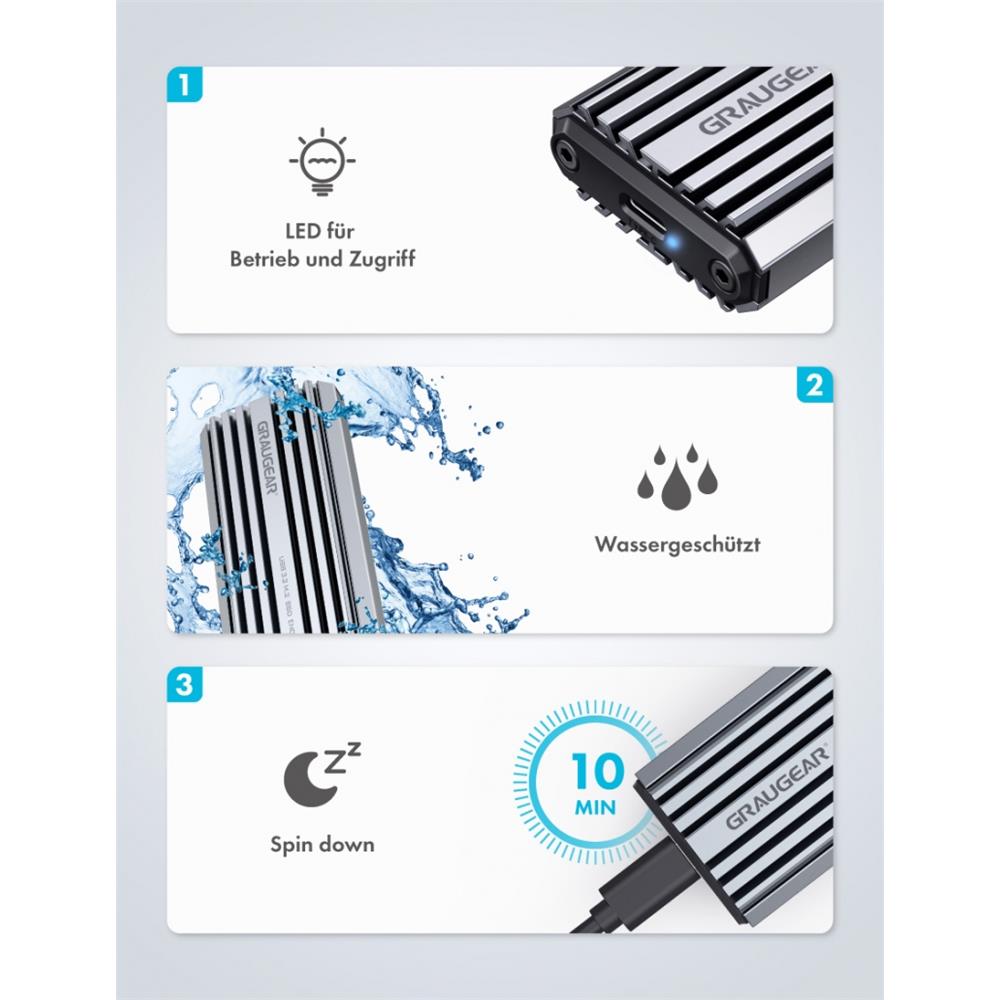 GRAUGEAR USB Type-C Gehäuse für M.2 NVMe SSD, Wassergeschütztes Aluminiumgehäuse