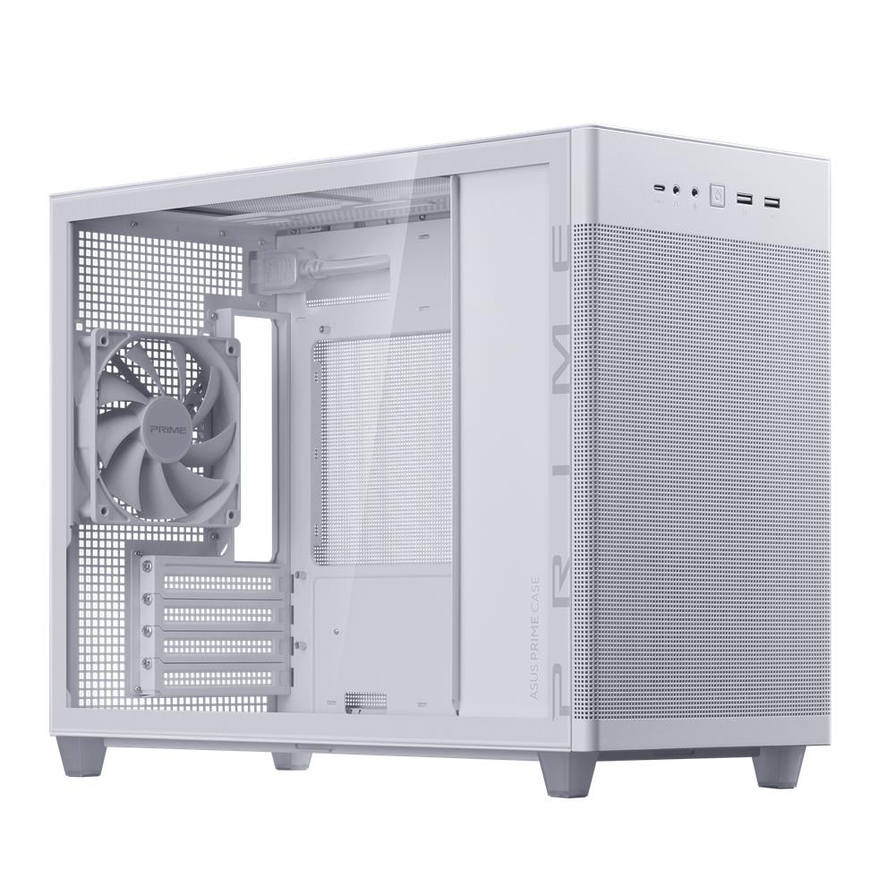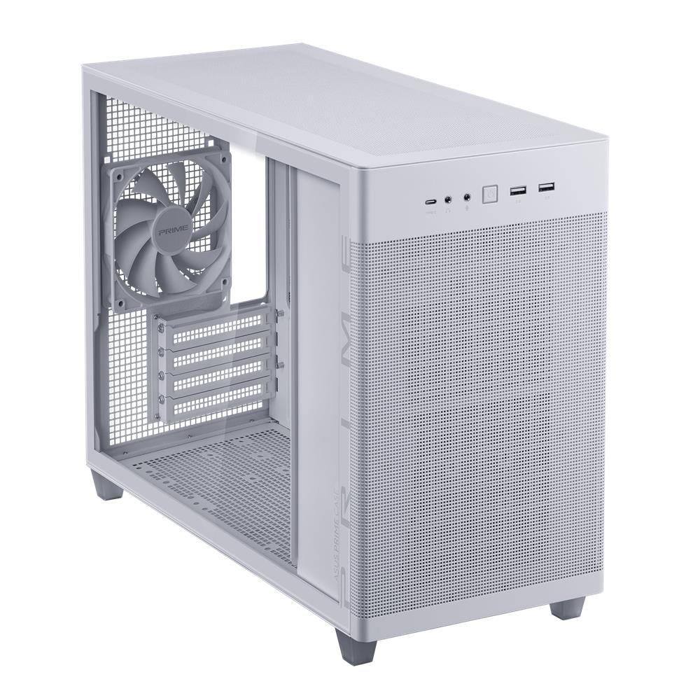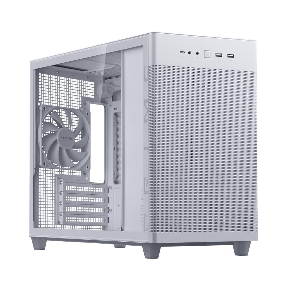 ASUS Prime AP201 Tempered Glass MicroATX Gehäuse Weiß, unterstützt 360-mm-Kühler, ATX-Netzteile
