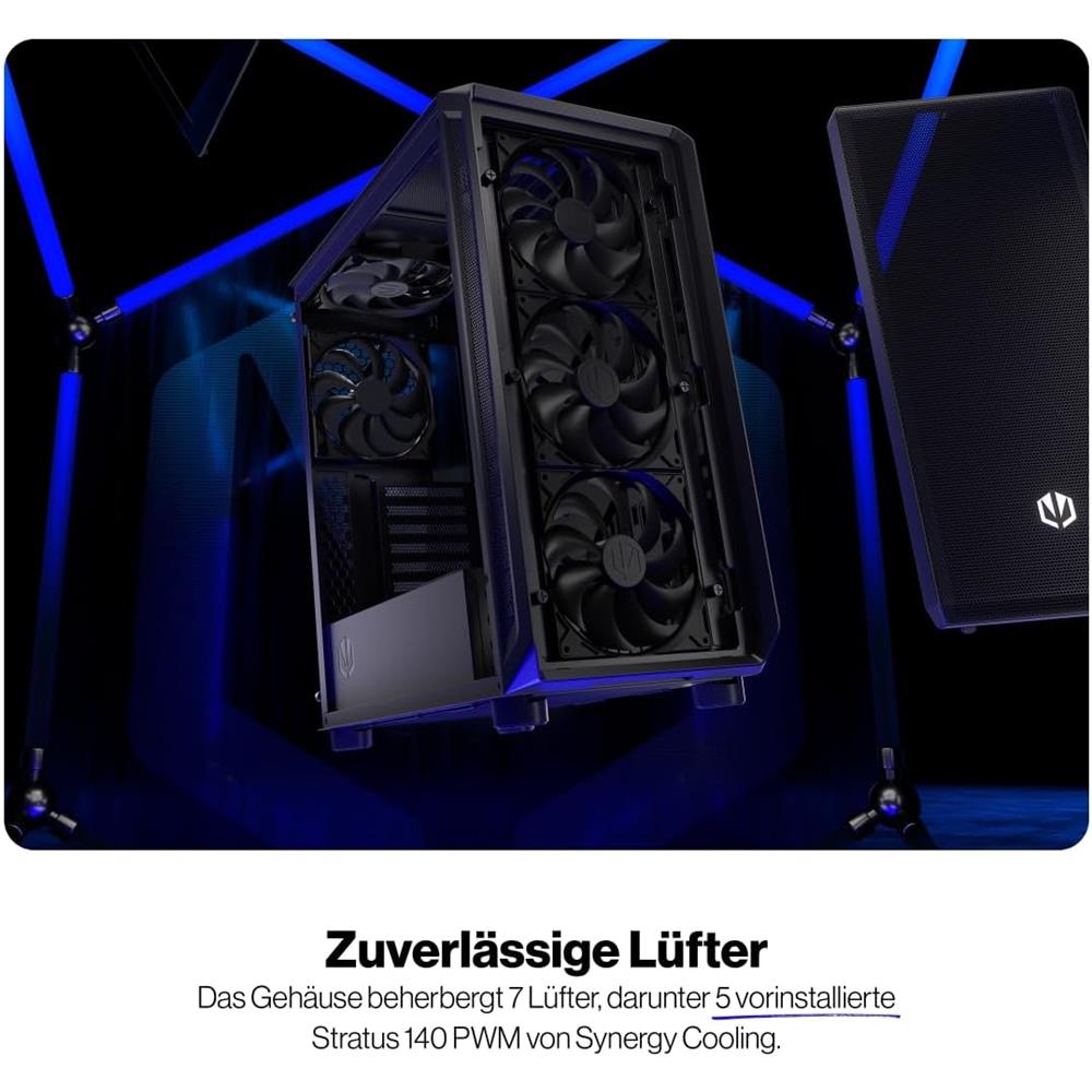 - Vorderseite: 3x Stratus 140 PWM Lüfter (200–1200 U/min)