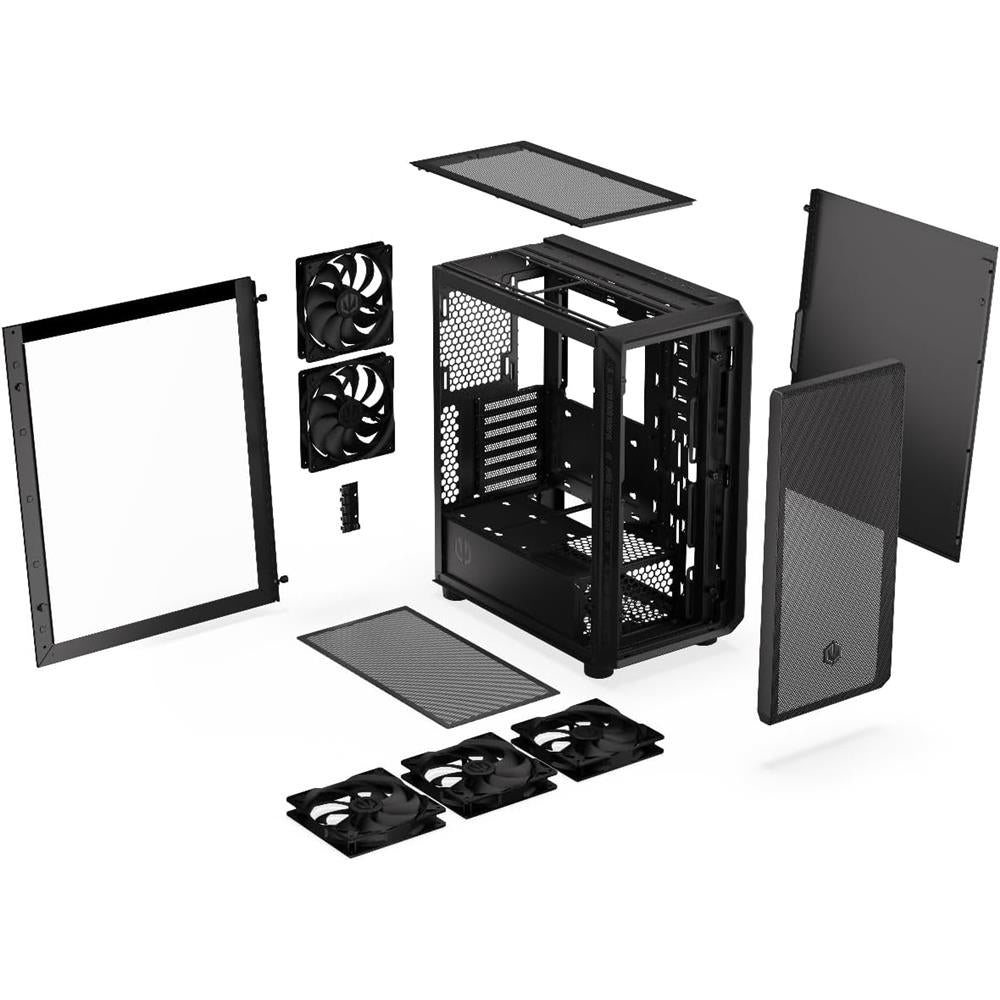 ENDORFY Arx 500 Air, ATX PC-Gehäuse, inkl. 5x 140mm PWM-Lüfter, Seitenteil aus gehärtetem Glas | EY2A010
