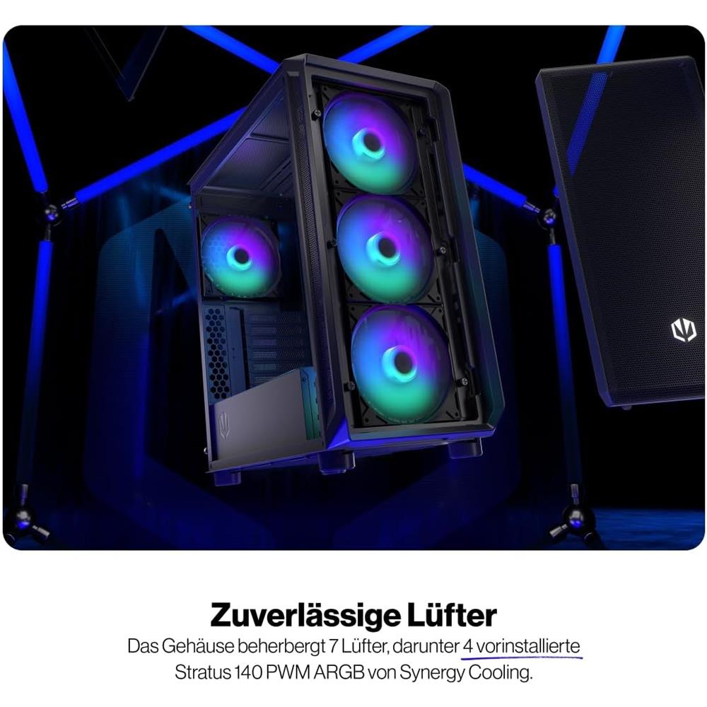 - Vorderseite: 3x Stratus 140 PWM ARGB Lüfter (200–1200 rpm)